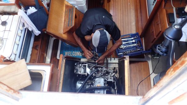 この船内機は直接冷却式のため、冷却用の海水が配管の細い部分に潮詰まりを起こして循環が滞っていました。
