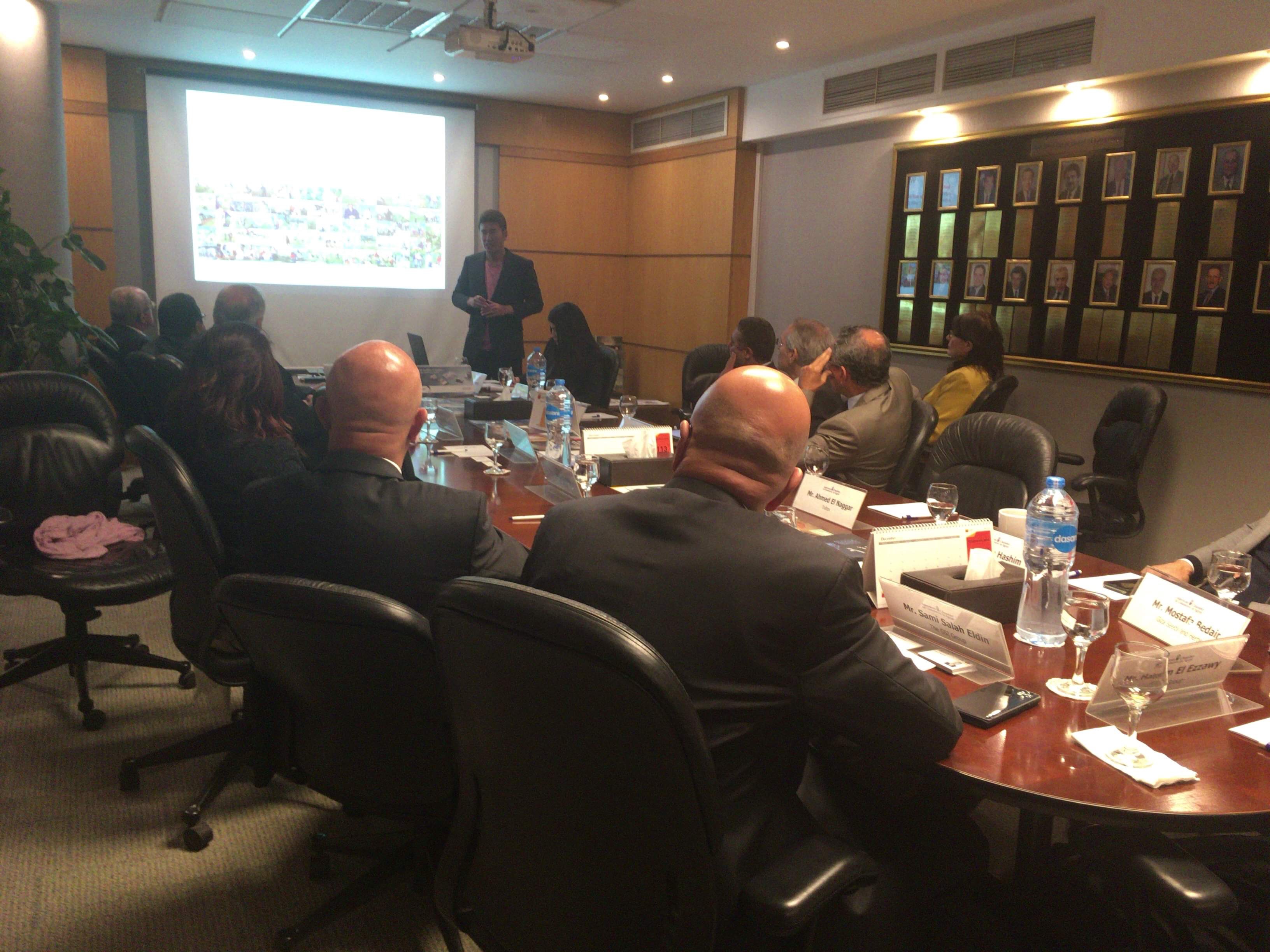 次に向かったのは、同じくカイロ市内にある American Chamber of Commerce です。エジプト大使館を通じて、エジプトにおける農業・食品産業の会社トップ10社の社長・CEOを集めていただき、協生農法についてプレゼンしました。