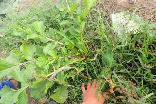 牛糞肥料以外に、化成肥料、農薬も使用しているそうです。施肥のせいか、どの野菜もいずれも大きく育っていました。