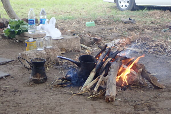 サトウキビの茎や木切れを使って火を起こし、非常に香りの良い紅茶を入れます。