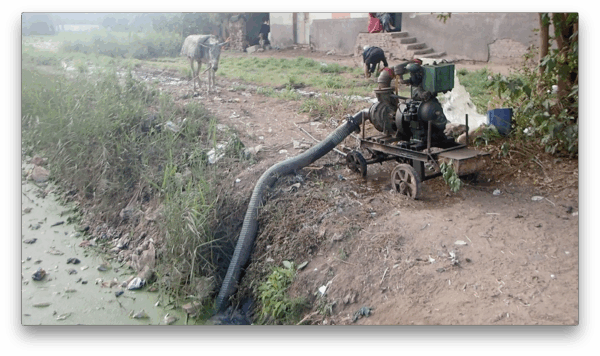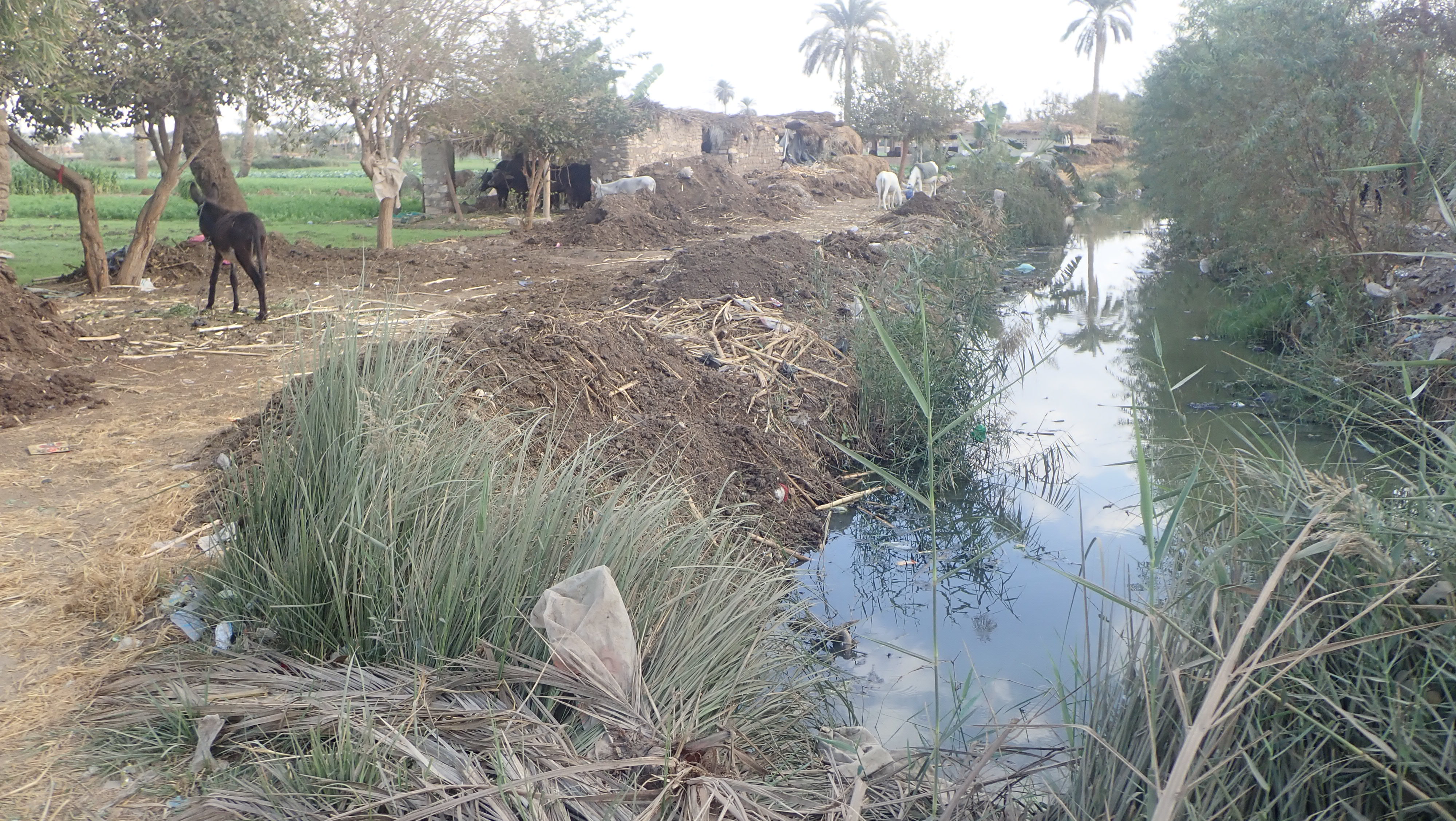 しかし、農業用水を組み上げる水路にはそこかしこに牛糞肥料の山が流れ込み、有機物が過多な状態になっていました。