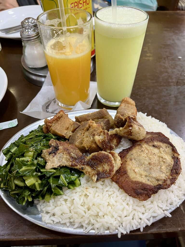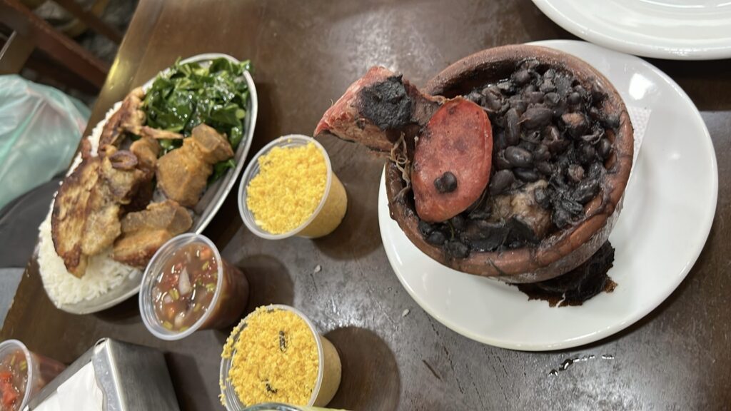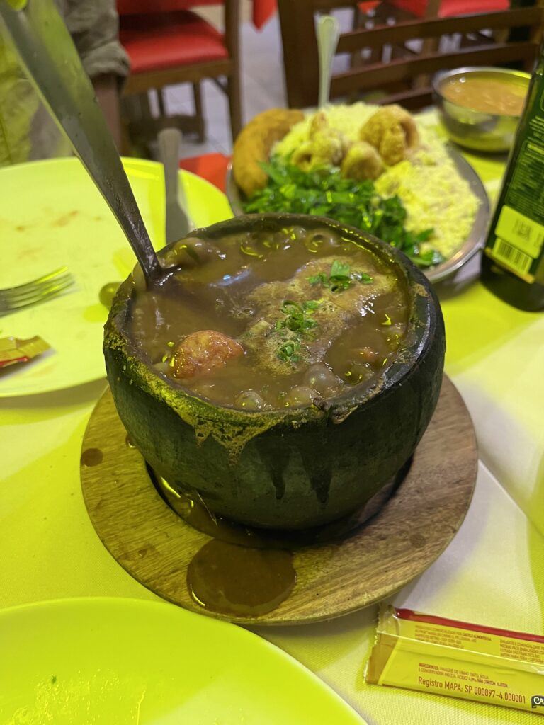 代表的な家庭料理、feijão(フェイジャオン)。本当に小さいサイズのを頼むと念を押しても巨大なボウルで出てくるので、毎回満腹以上になります。