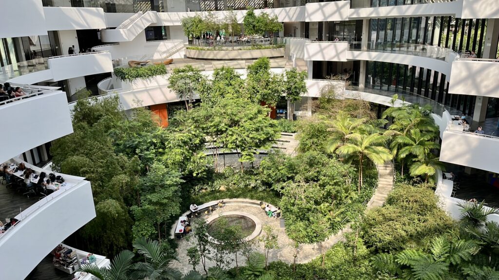 植えられている木や草の多様性がとても多く、計画的に導入管理されているなら、都市部の拡張生態系の例と言えるかもしれません。