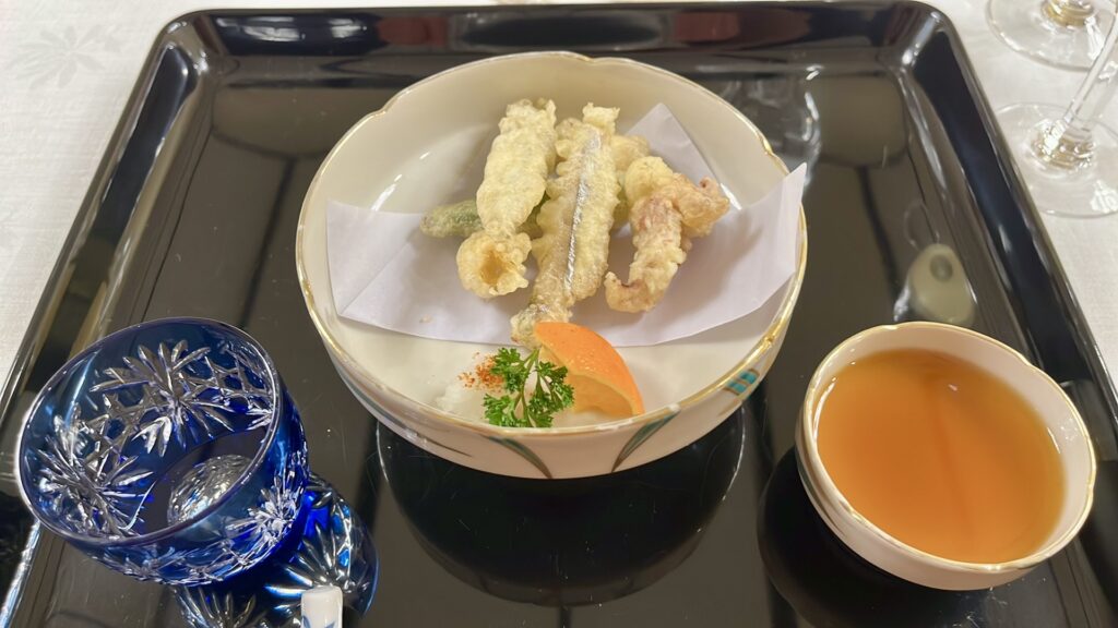 マンジュビニャ(川魚)とイカの天ぷら 姫レモン添え