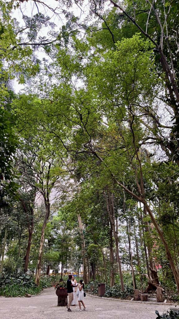 この公園は多層に樹冠を持つ樹々で覆われ、とても清々しく、各所のベンチでは人々が愛を語らい、歩いていてとても居心地の良い公園でした。