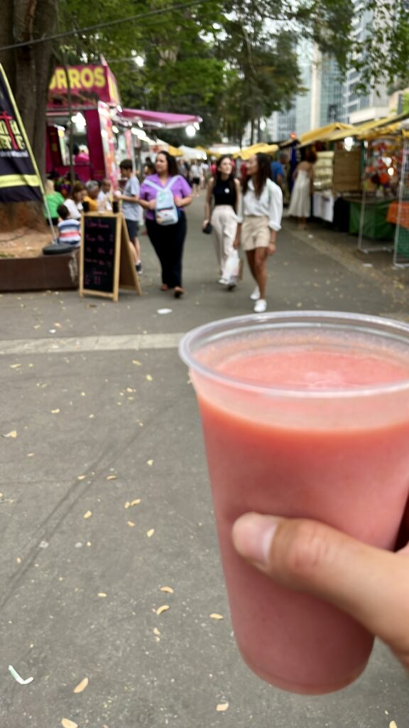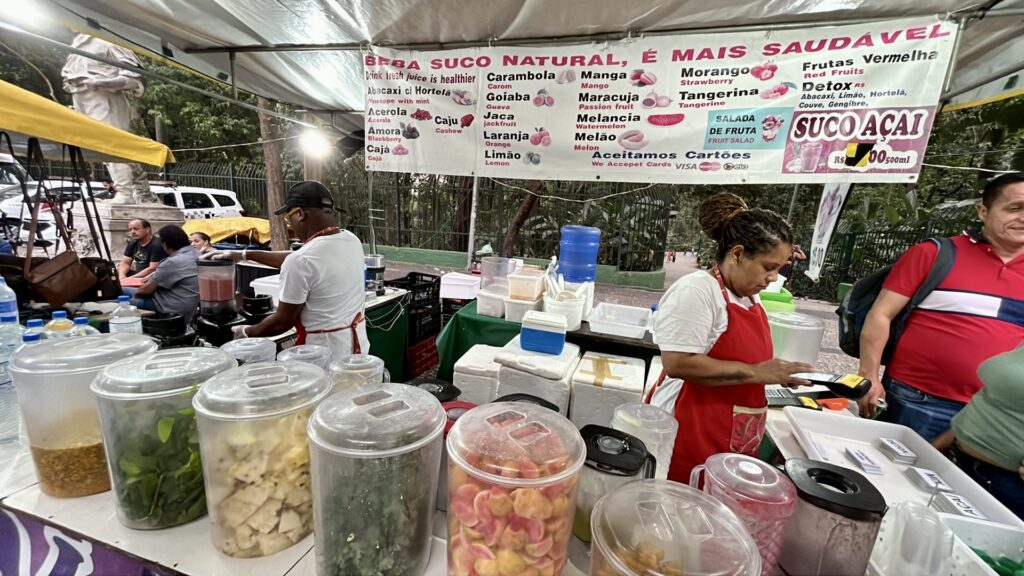 賑やかな場所にあるInstituto Chão。アグロフォレストリーなどの小規模農家から少量多品目の産物を集めて売っている協同組合です。最初にレジに並ぶと、この組合の仕組みを説明され、商品代(なんと原価で販売!)に加えて30%の運営費を寄付するかどうか聞かれます。これは払わなくても良いのですが、多くの人が寄付もしており、80年も続いている民主的な組織です。私有財と公共財が入り混じった性質の社会的共通資本の一例と見ることもでき、小規模農家と流通をつなげる上で意義深い仕組みであると思います。関係者の話では、「商品に利益率を乗せて販売するより、完全に原価で販売し、この仕組みに価値を感じている人から寄付を(上限額なしで)募る方が、きちんと資本が集まる」というのが印象的でした。