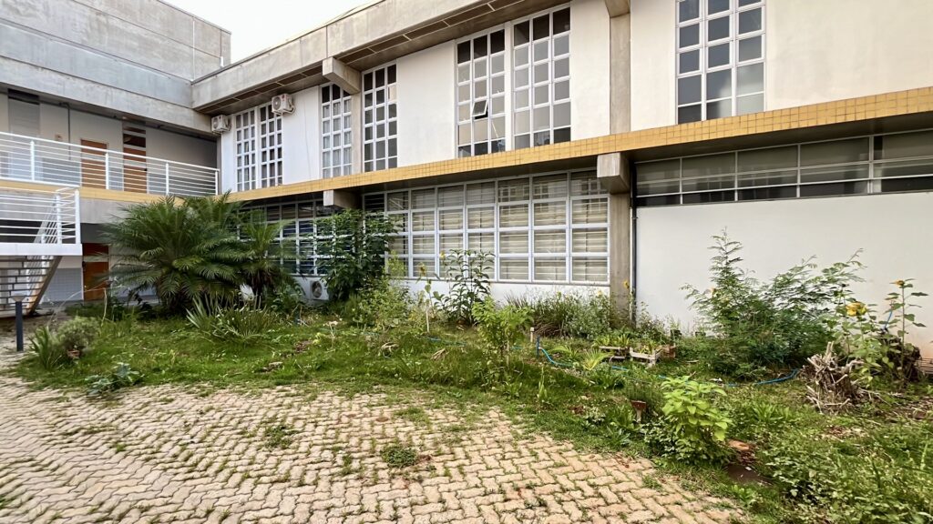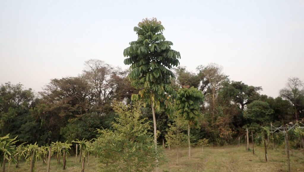 通路にある小さな苗が、2種間ほど前に植えられたジュサラです。今は乾季の終わりで100日以上一滴も雨が降っていないそうですが、幼木も枯れることなく、2週間以内には雨季の最初の雨が降るだろうとのことでした。