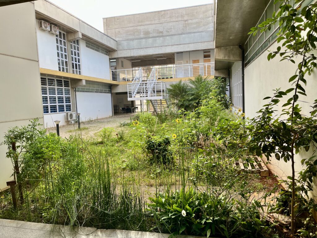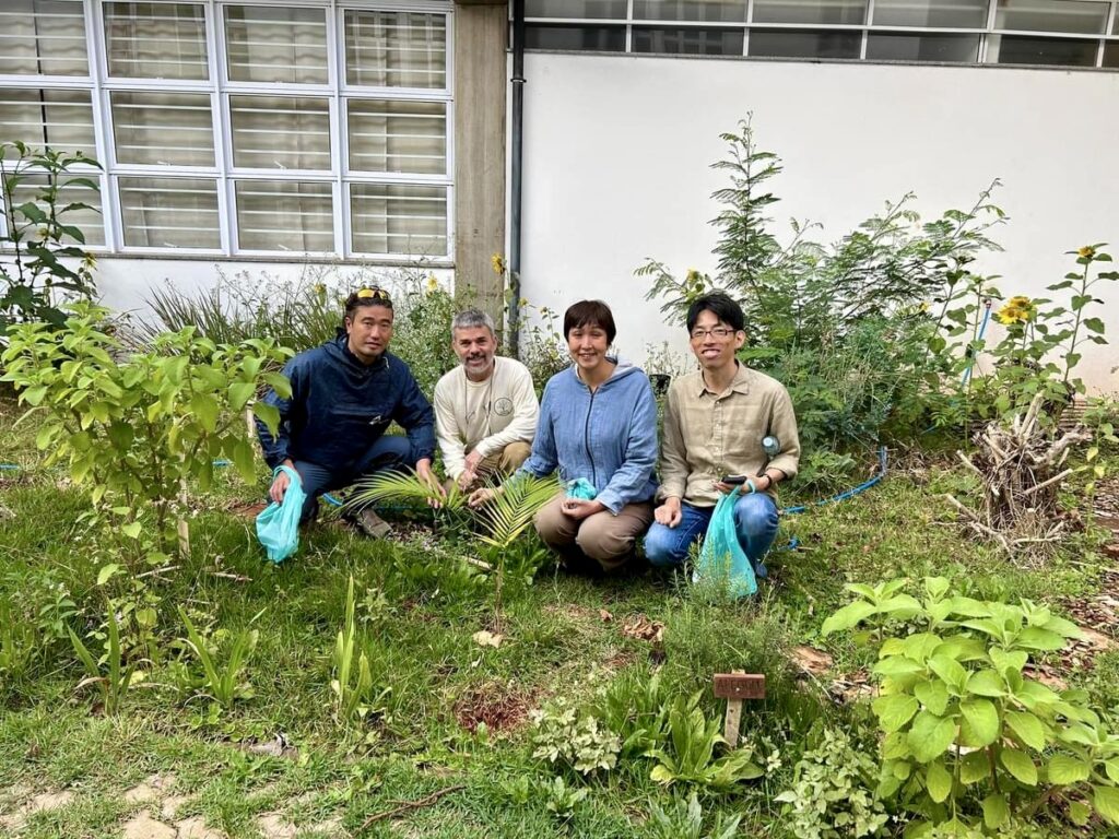 校舎の中庭には多種類の有用な草本と低木を植え合わせた実験庭園があり、無耕起・無施肥・無農薬なのでSynecocultureの基準にも合致する取り組みのようです。早朝から議論が盛り上がりました。
