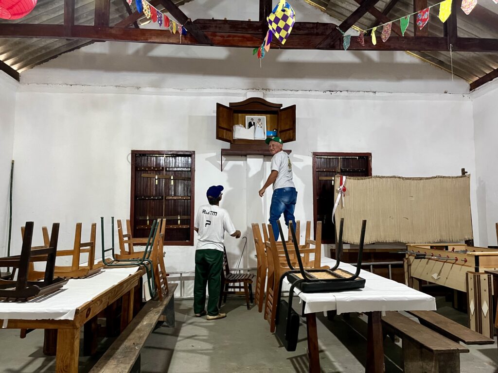 Sete Barras の Raposa(狐という意味)の集落につきました。現地の日系人の方々が、入植時に建設した「会館」で出迎えてくださいました。