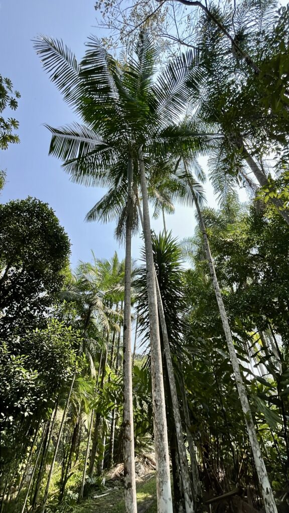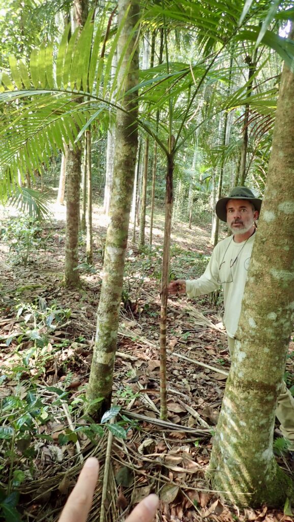こちらはアサイーの高木。ジュサラと似ていますが違う種です。どちらも新芽はPalmitoとして食され、食感は筍や白アスパラに似ています。どちらも天然物の乱獲により数が減少し、現在は保護区が設定されています。