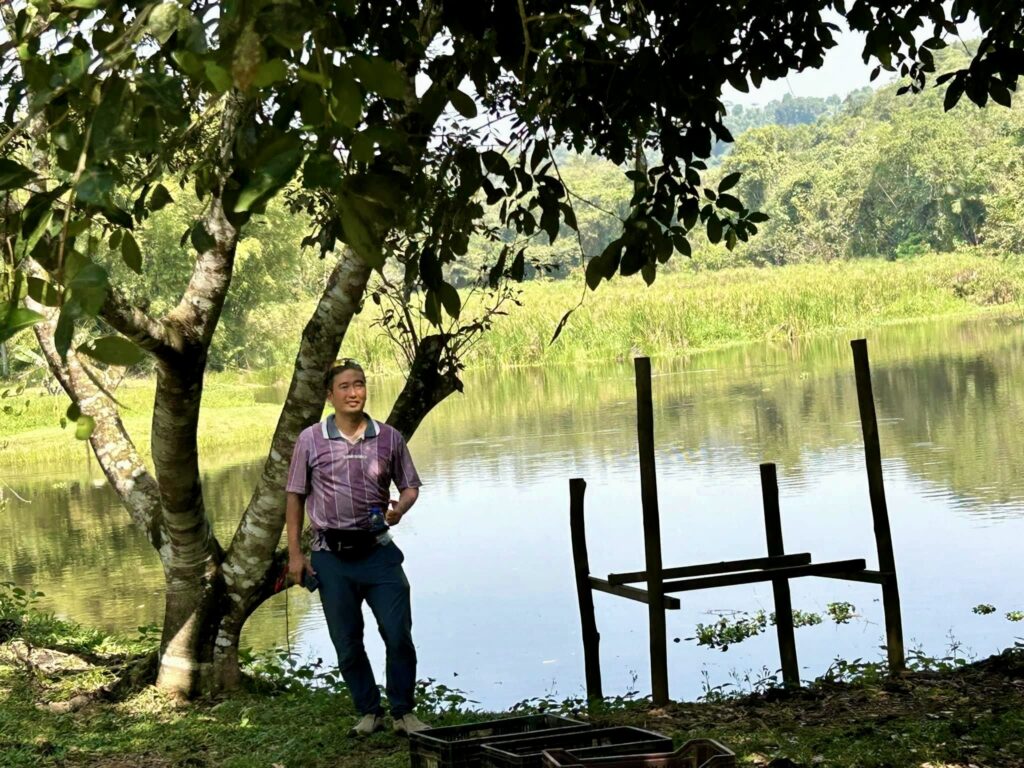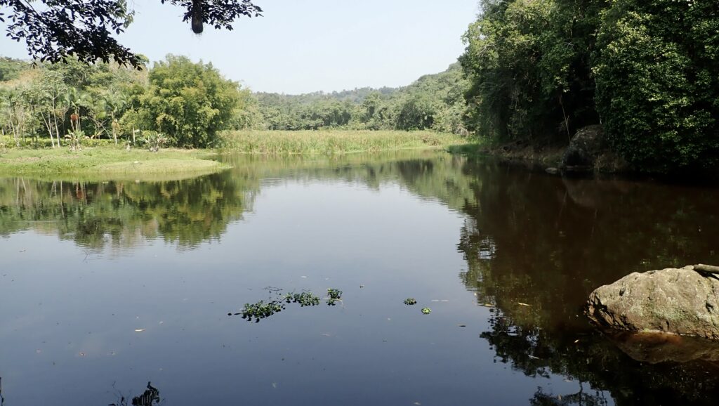 山の麓には農業用水が整備されていました。鯉が優雅に泳いでいます。アマゾンからは遠く、ワニはいないため泳げるそうです。