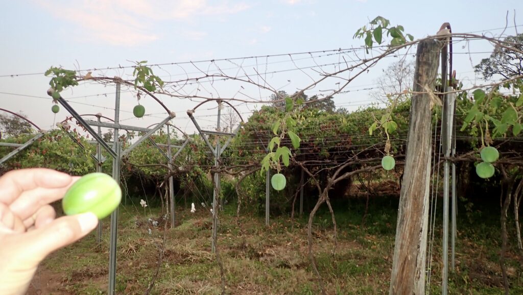 まだ未熟ですがパッションフルーツ。maracujáと呼ばれます。