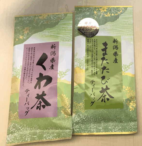 帰りの道中で寄った道の駅越後川口で購入できるくわ茶とまたたび茶。どちらも新潟県産の天然のものを使用しているそうで、美味しかったです。