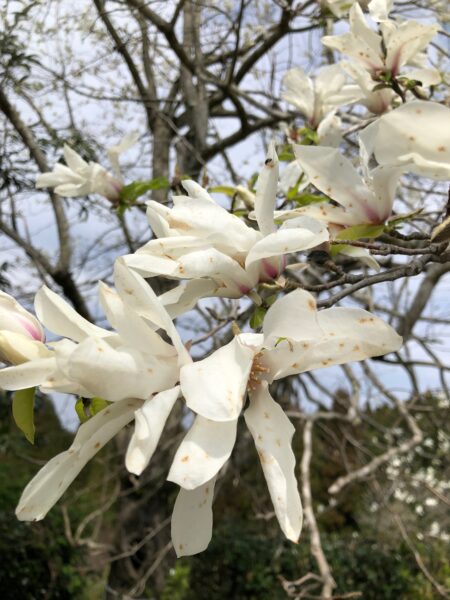 人類発祥より遥か昔、植物の上陸進化の際に初めて昆虫を使った受粉戦略を展開したマグノリアの一種であるコブシの花。今でも豊かな芳香を放ち、小さな甲虫類が頻繁に受粉に行き交っている。