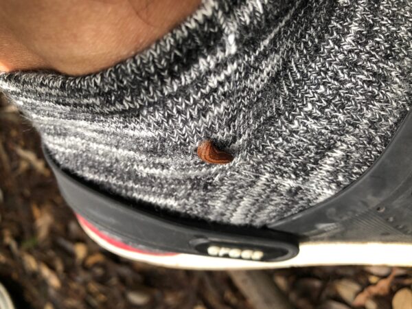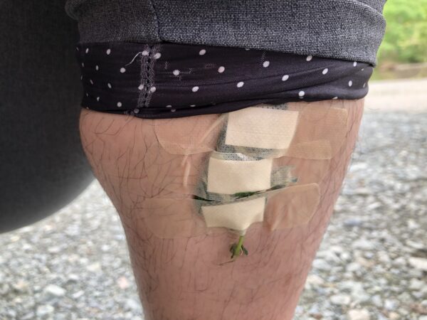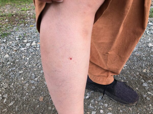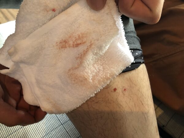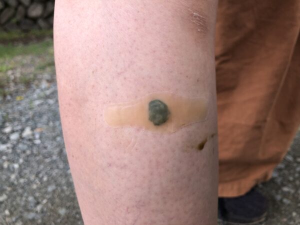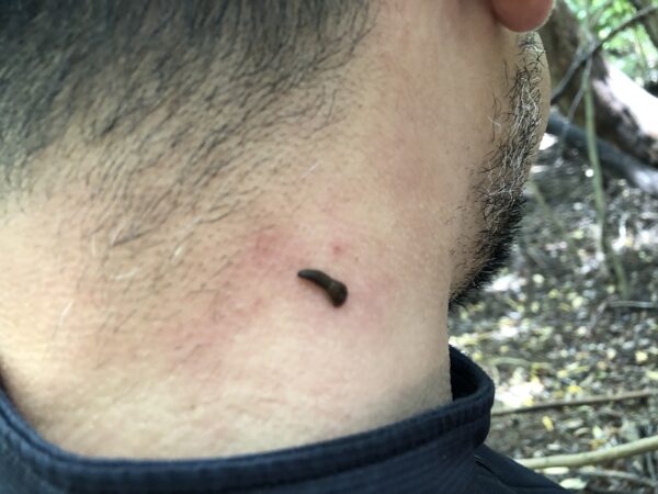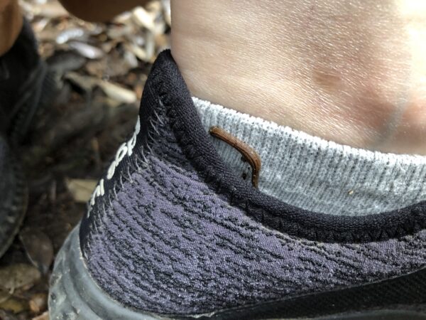 山道の帰りに、ヒルに吸血されていることが発覚。水源が豊かなのでヒルの絶好の生息地なのでしょう。