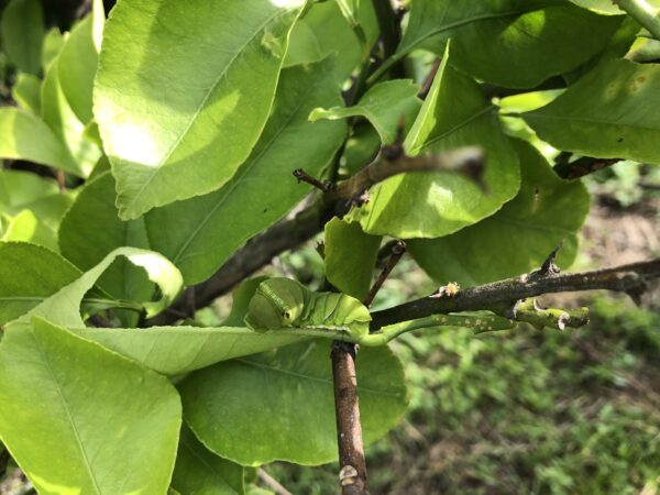 レモンの木のアゲハの幼虫。普段は虫が苦手な人も、生態系の中でそれぞれの役割を認識した上で見ると改めてその仕組みの中にいる自然さを発見したようでした。