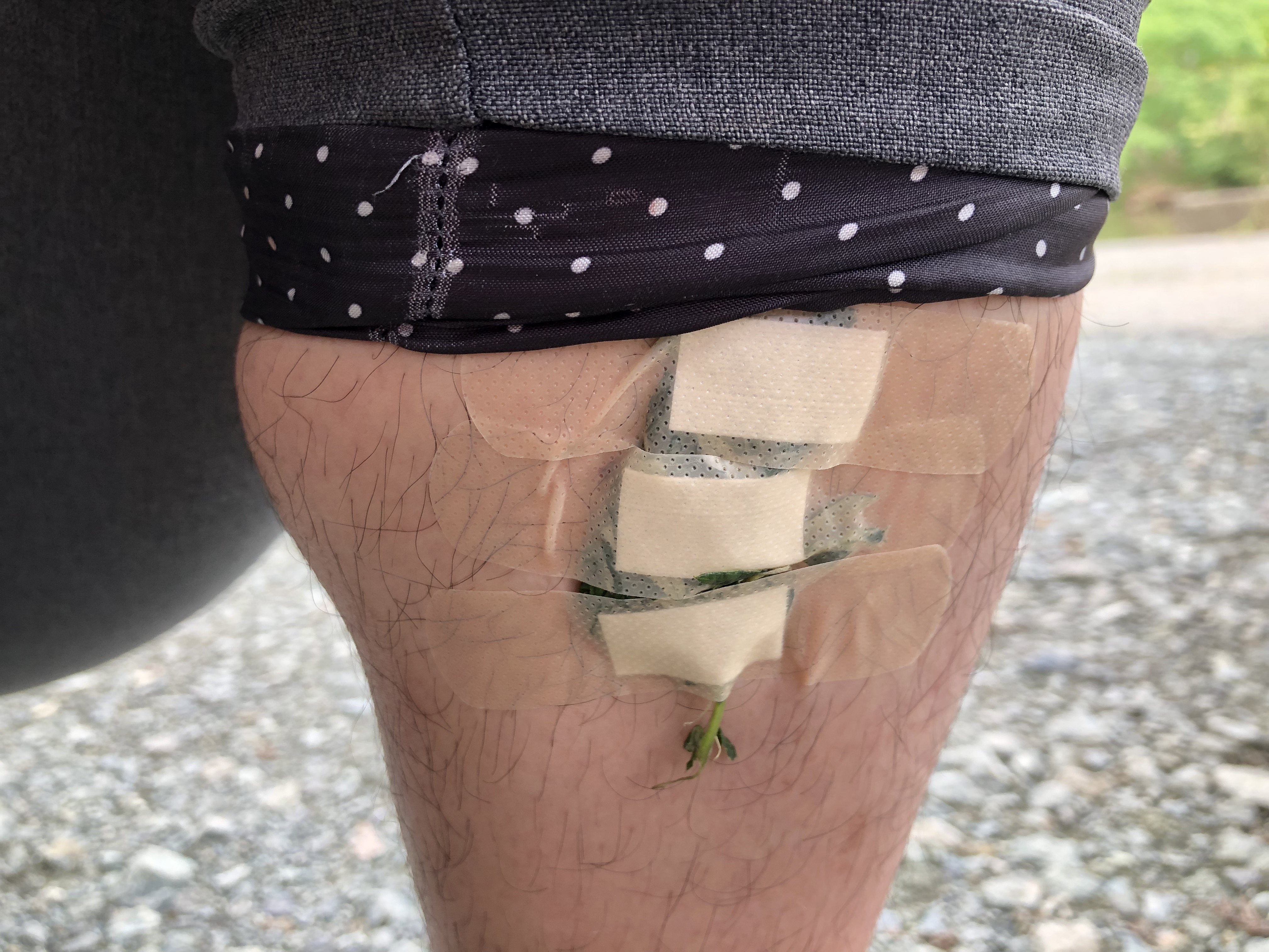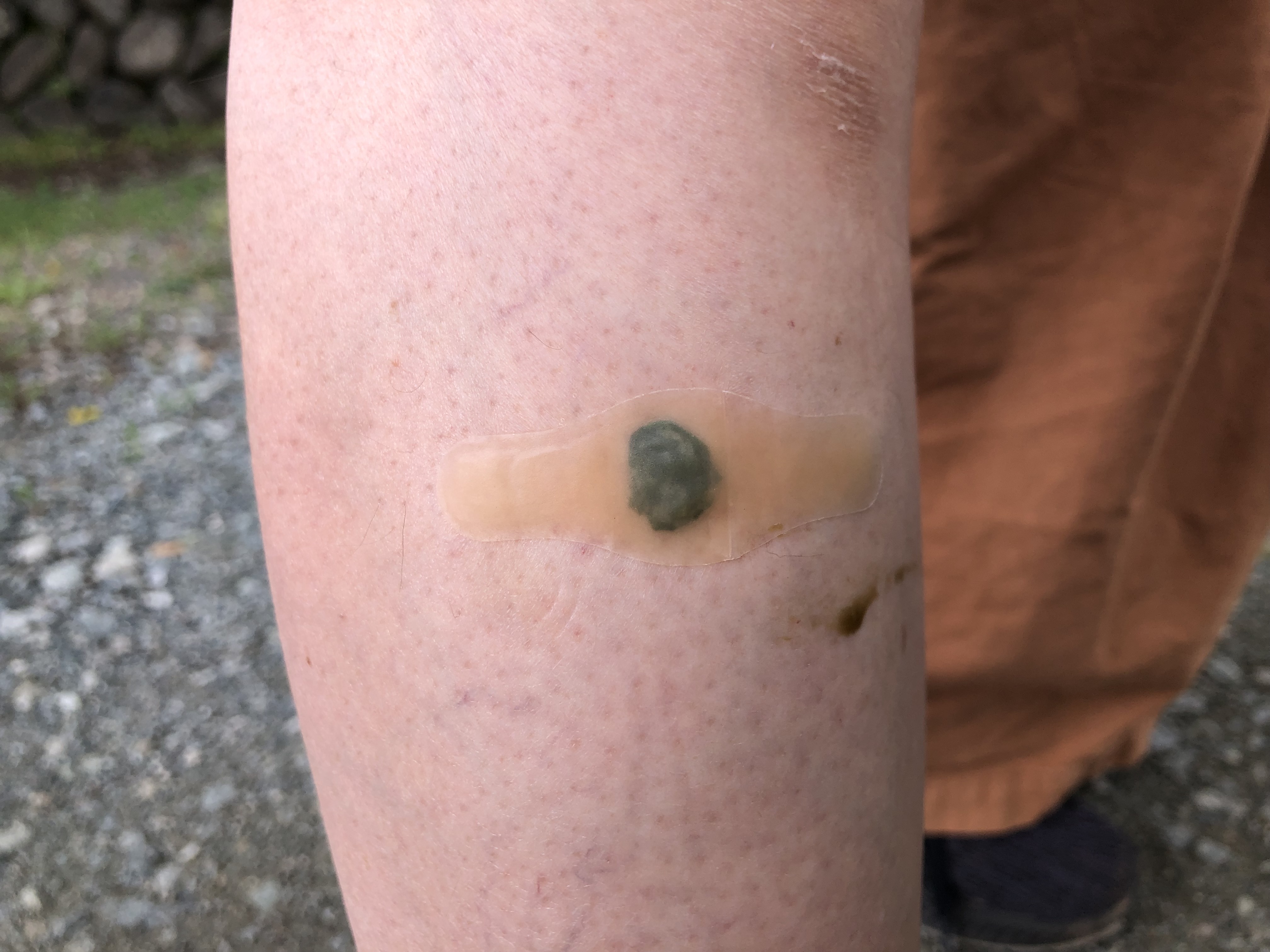 山道の帰りに、ヒルに吸血されていることが発覚。水源が豊かなのでヒルの絶好の生息地なのでしょう。