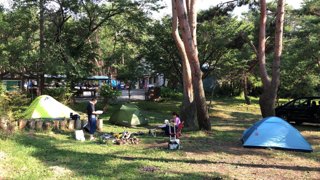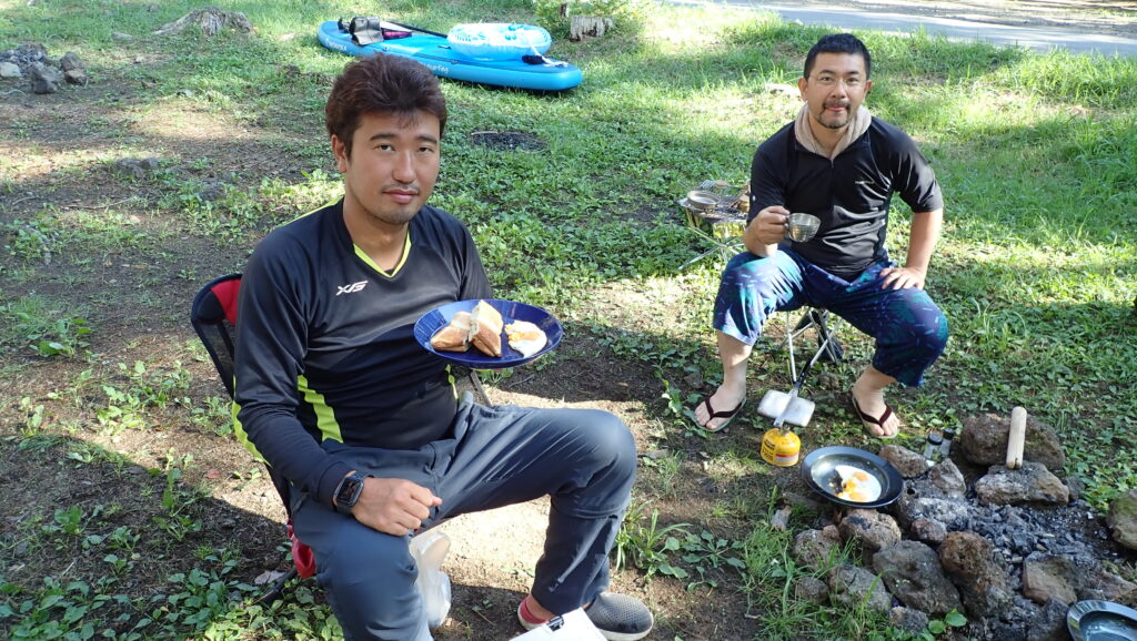 食後にひと泳ぎした後、最後に片付けをして河口湖へ向けて移動します。