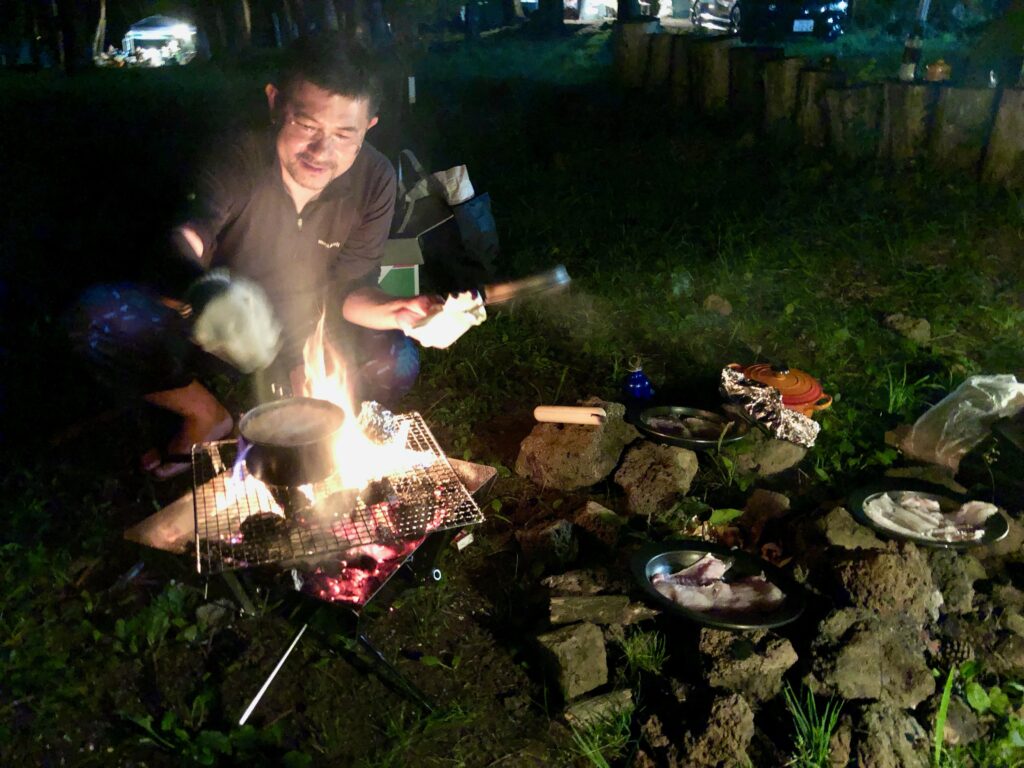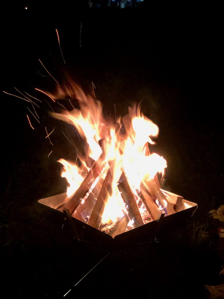 協生農法の来し方行く末を語りながら、キャンプファイヤーで夜は更けていきます。