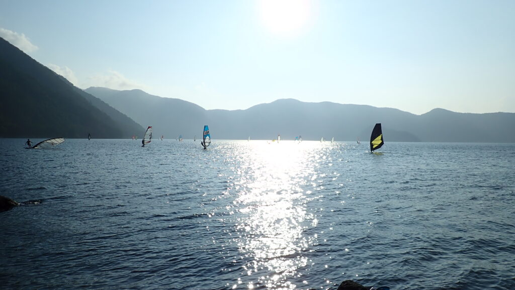 本栖湖はウィンドサーフィンのメッカでもあり、関西方面から多くのウィンドサーファーが来て賑わっていました。