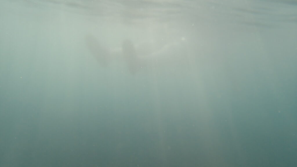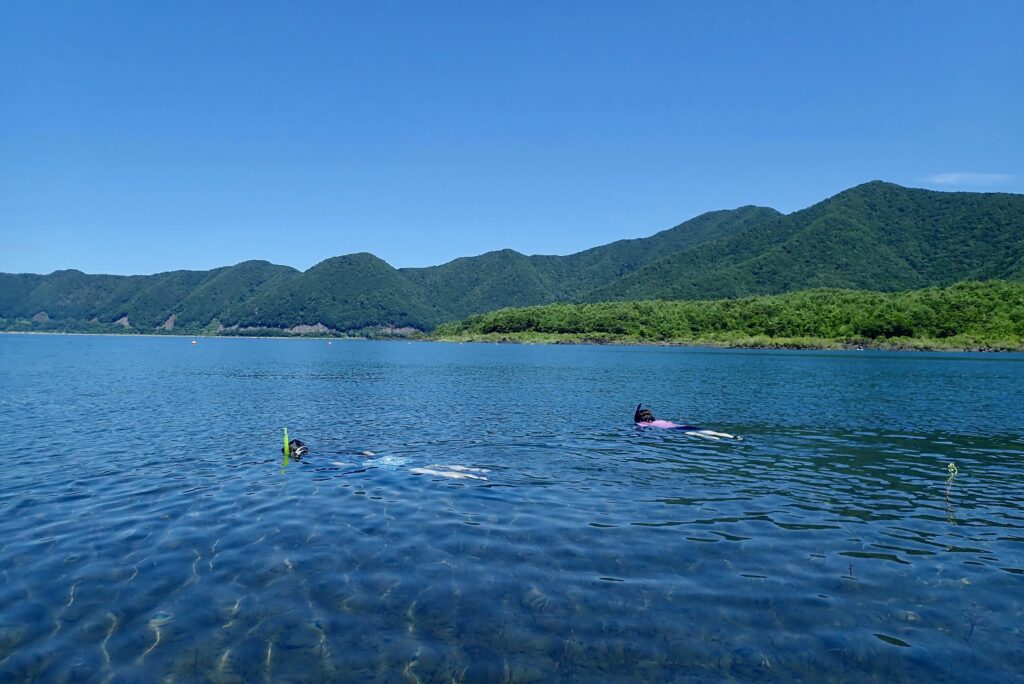 潜って10mほど追いかけると、淡水なので比重が軽くどんどん体が潜行して沈んでいってしまうのがわかります。気絶などした場合には、ライフジャケットなしでは浮かび上がることは不可能でしょう。