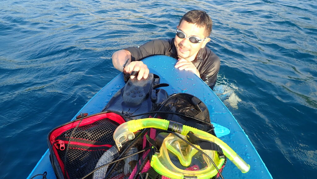 全員浮き身ができることを確認したら、SUPに調査用装備を積み込んで出発です。
