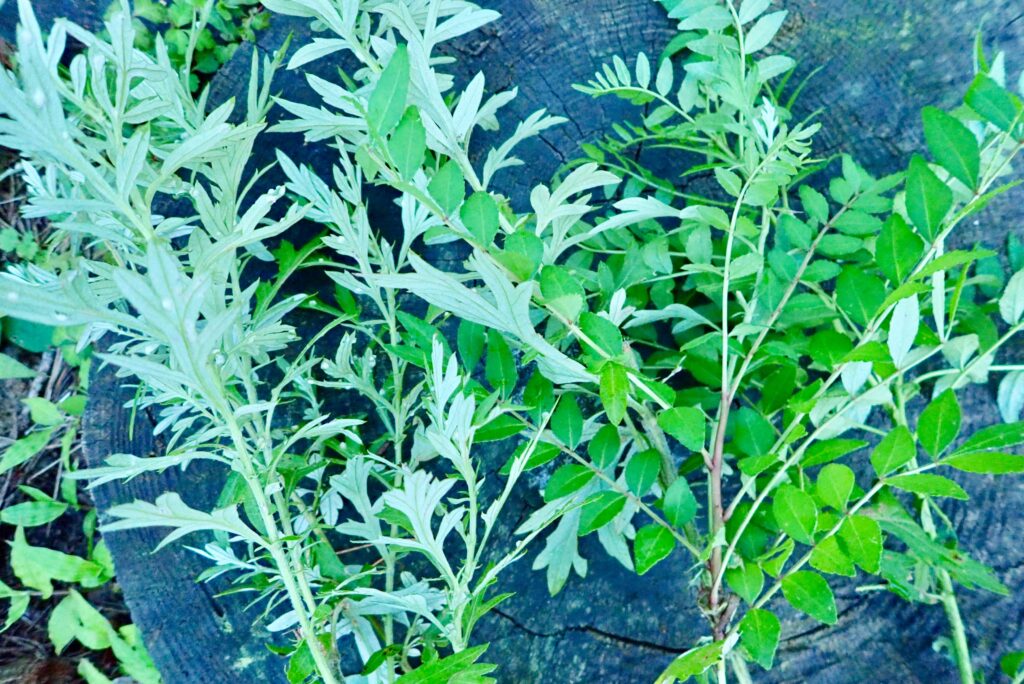 湖畔で採取したヨモギやサンショウ。香りが薄いイヌザンショウのようですが、野生のパワーは十分です。