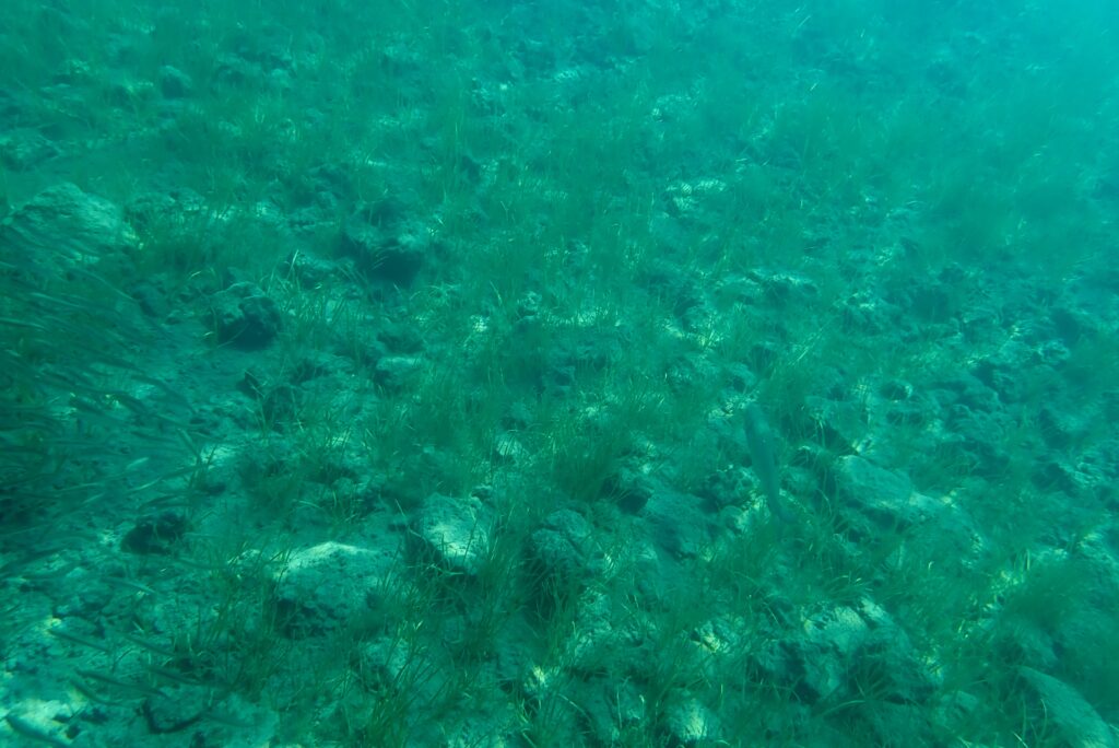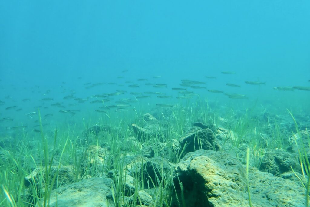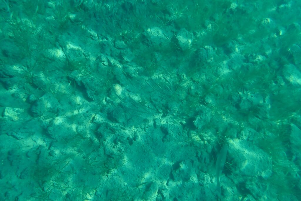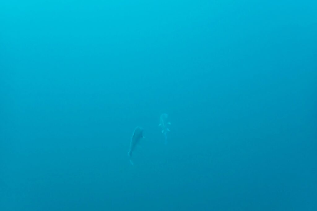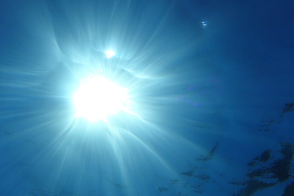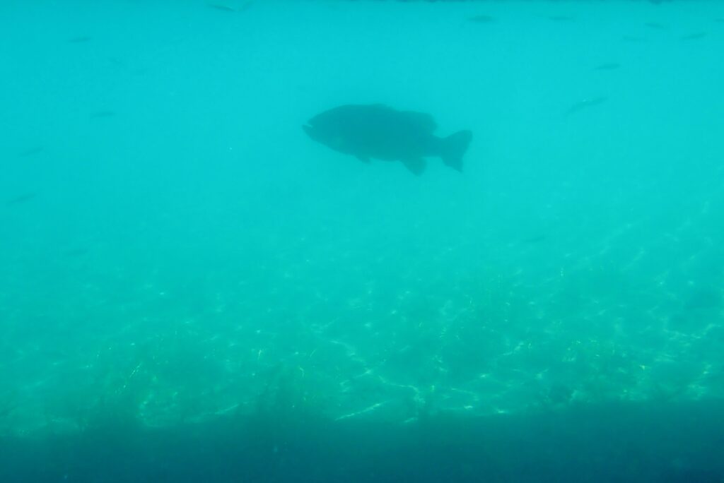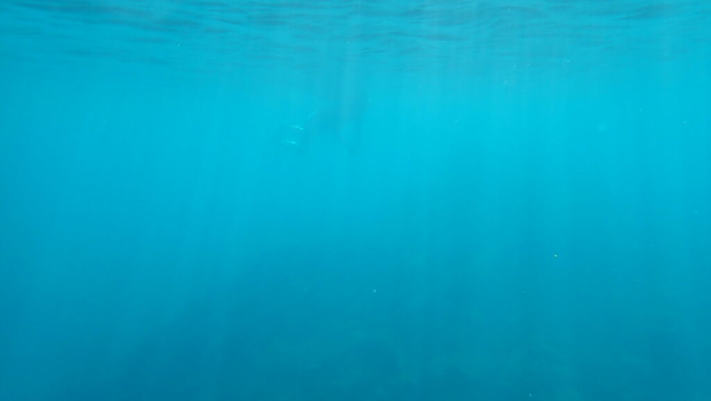 深みには、大きな魚が光に満ちたブルーの中を優雅に遊泳していました。