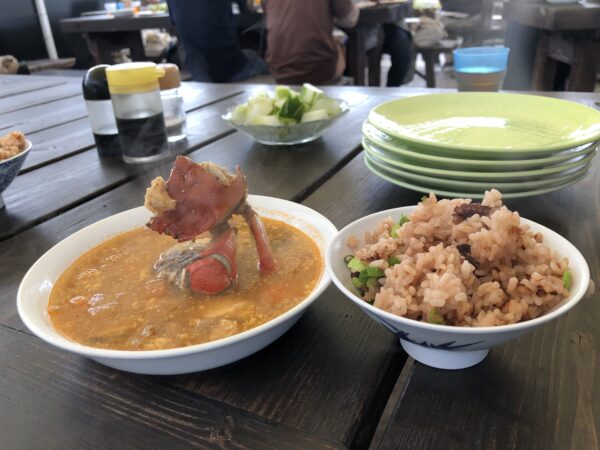 昼食は特製ブイヤベース(イノシシともクズガニの出汁入り)、ゴーリキ定番のタコ飯、