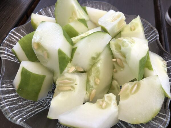 そして収穫されたキュウリ、マクワウリ、スイカなど。