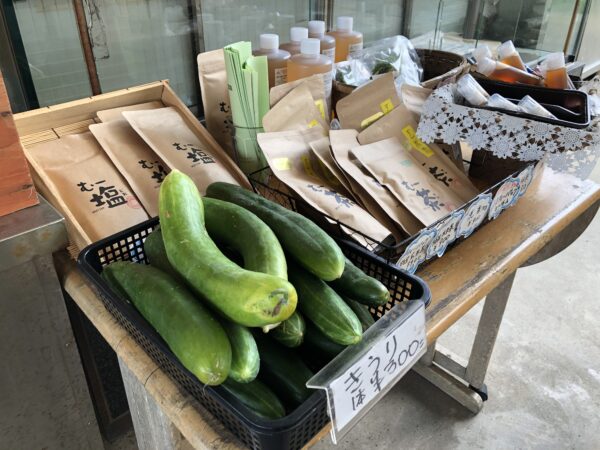 持ち帰り用に、様々なお茶やハーブ、野菜や惣菜を皆それぞれ購入していきました。桜自然塾では目的や用途に右往じて常に広いラインナップの協生産物を取り揃えています。
