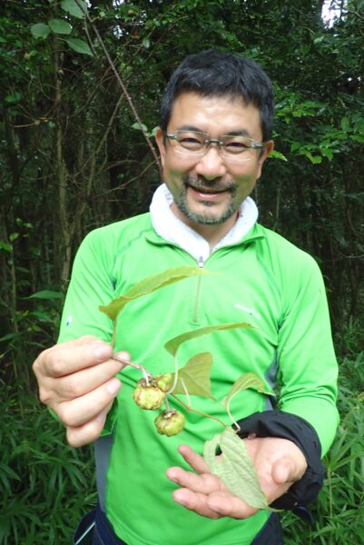 近くの谷には天然のマタタビが自生。漢方薬として珍重される虫瘤ができています。