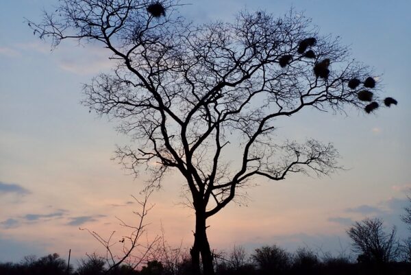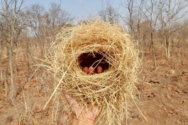 Along the dry river, a kind of vulture is nesting.