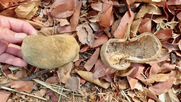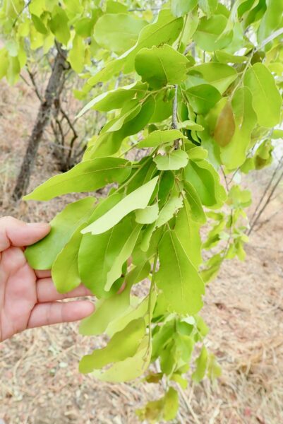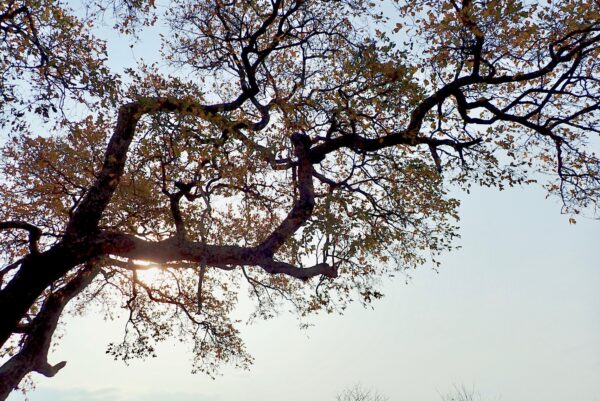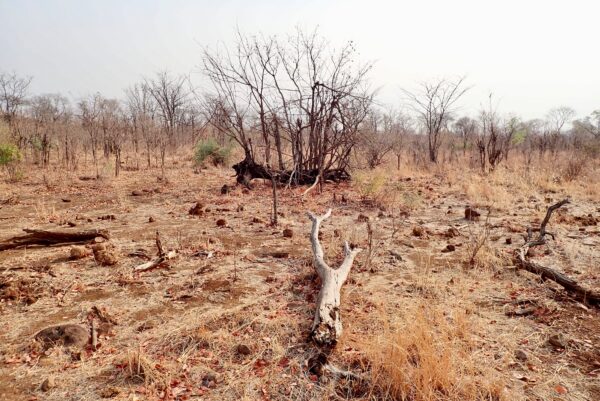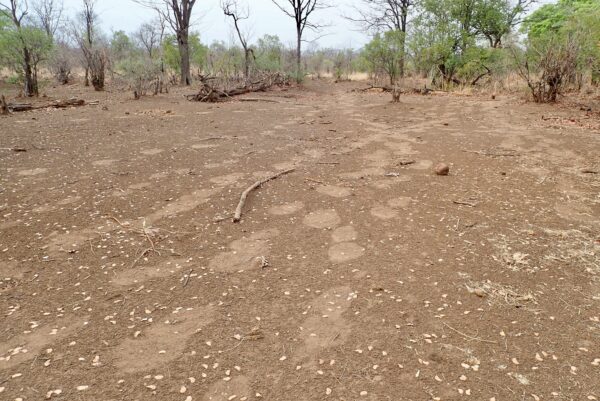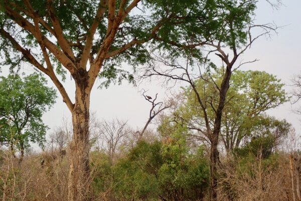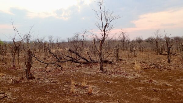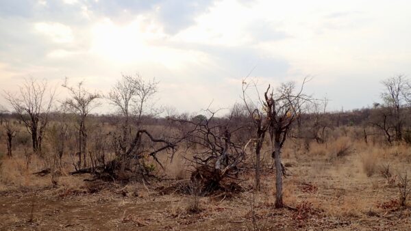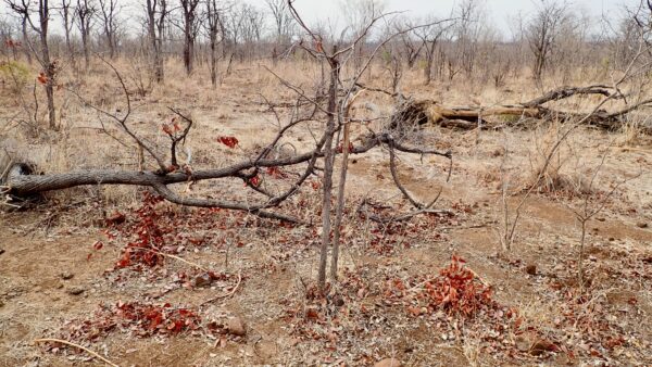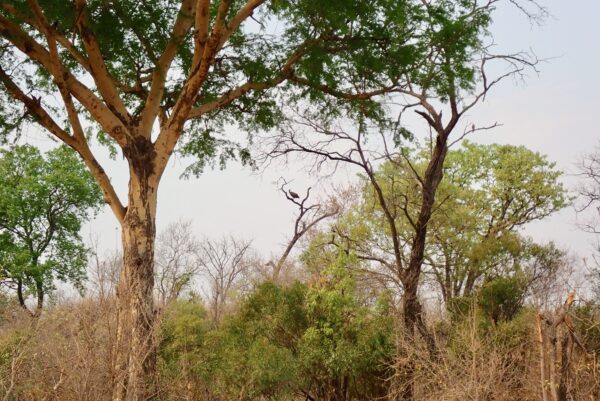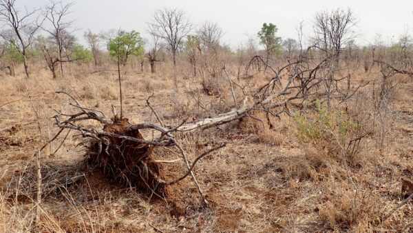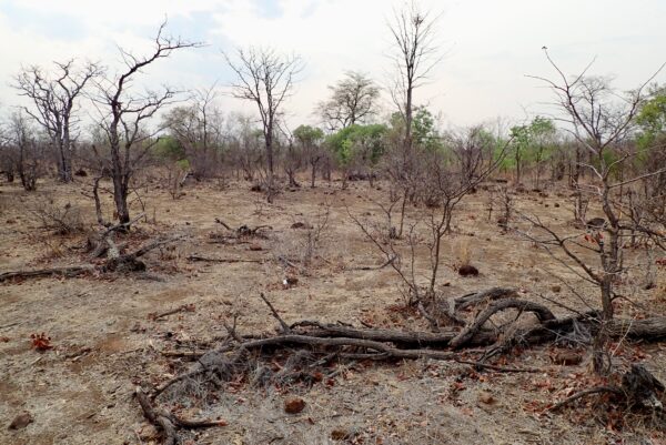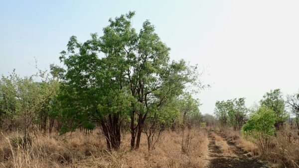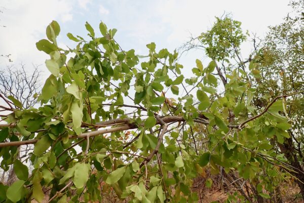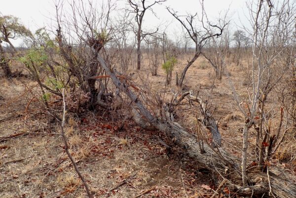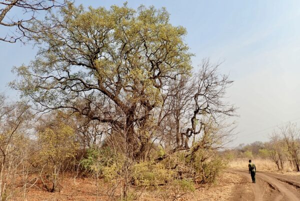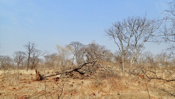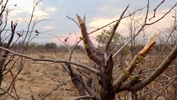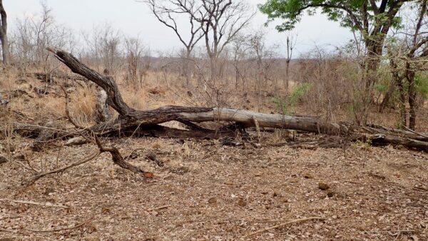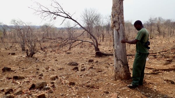 Tree with bark peeled off by elephant. If the bark peels off all around, it will die.