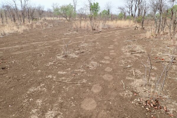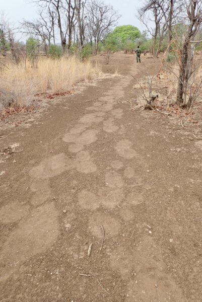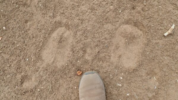 Hyena footprints. The nails are out and a little rough.