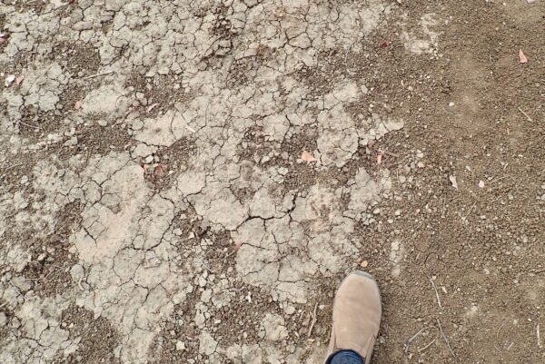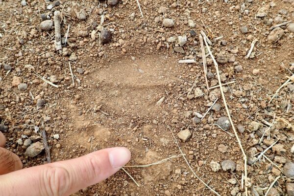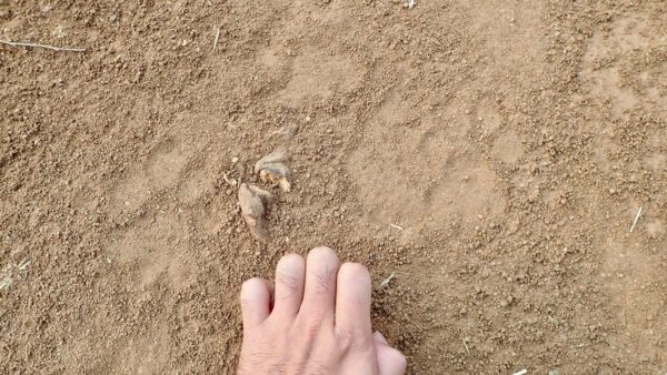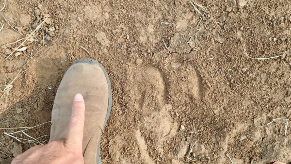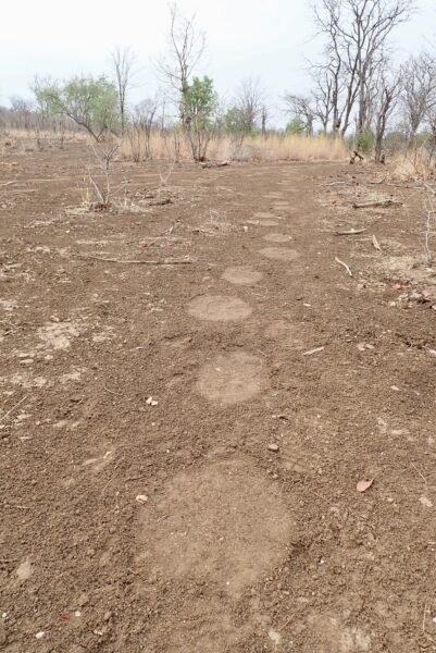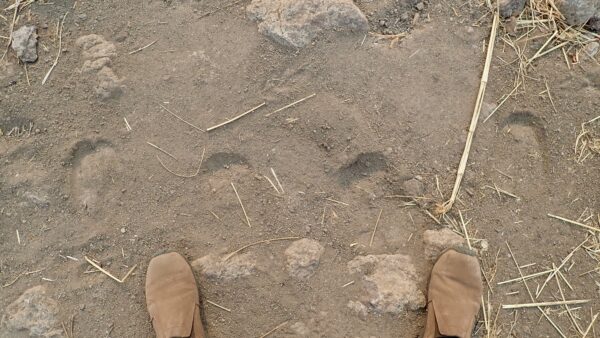 Rare leopard footprints going to the finger direction.