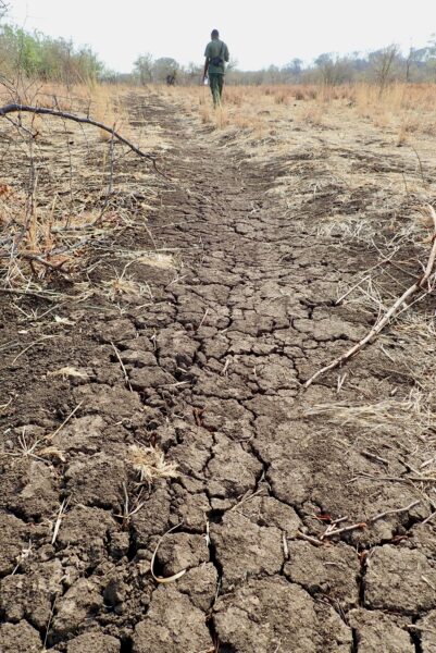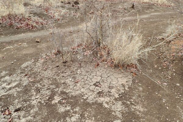 High grass along the dried river.