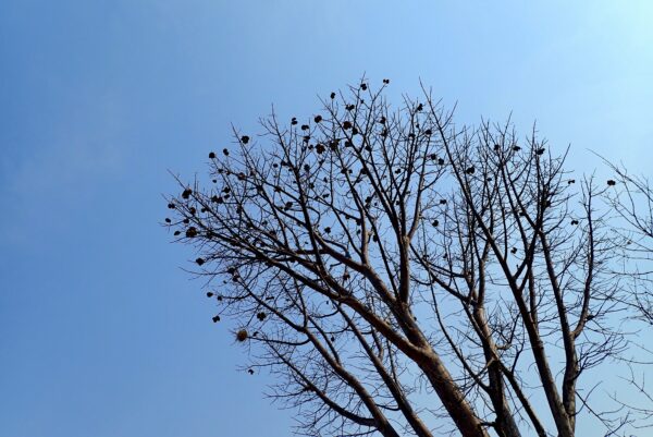 Tree trunk is covered with spiky wire mesh to prevent the damage by the elephants.