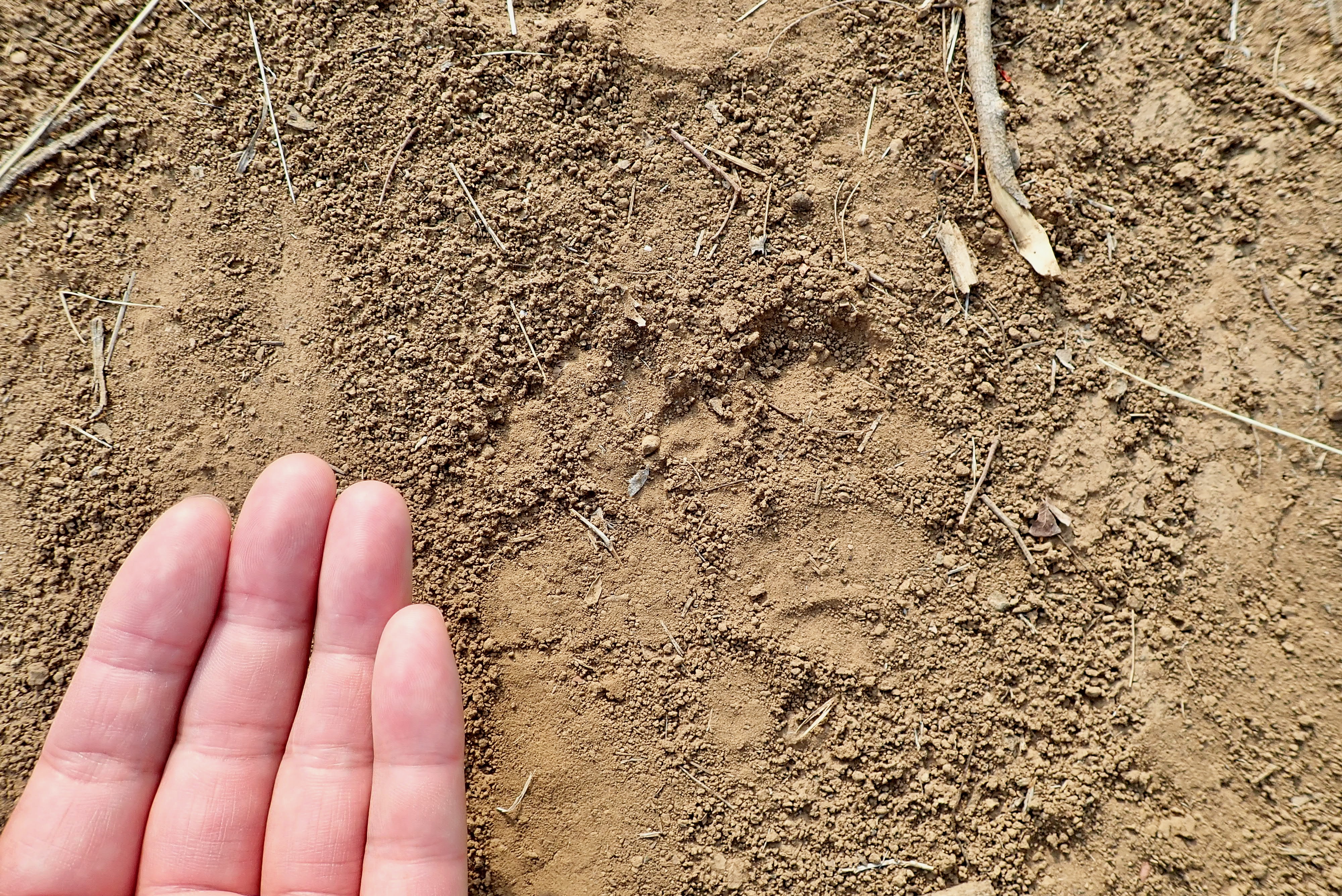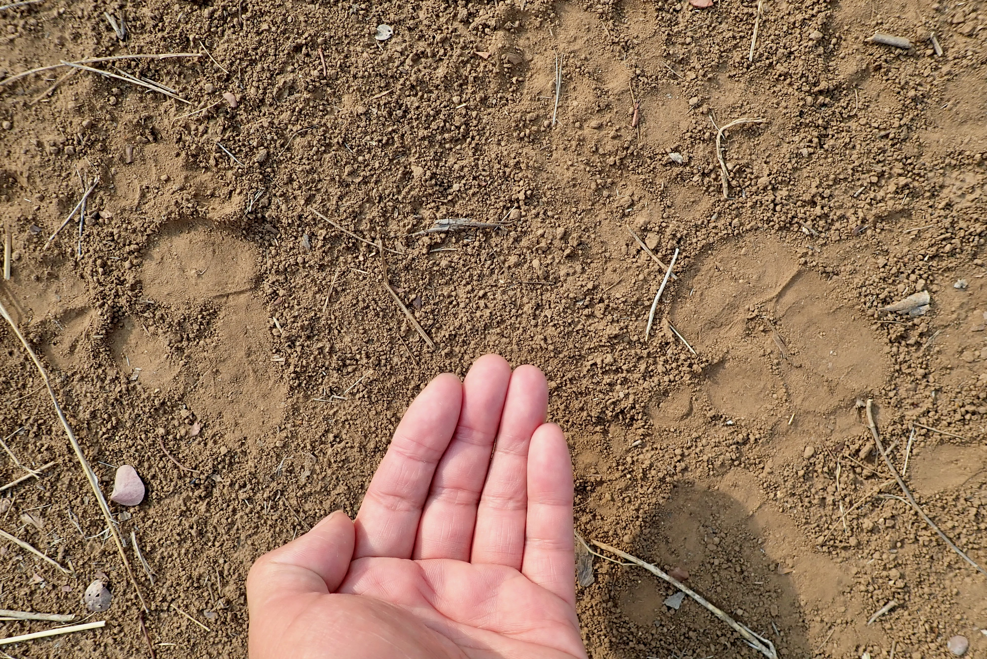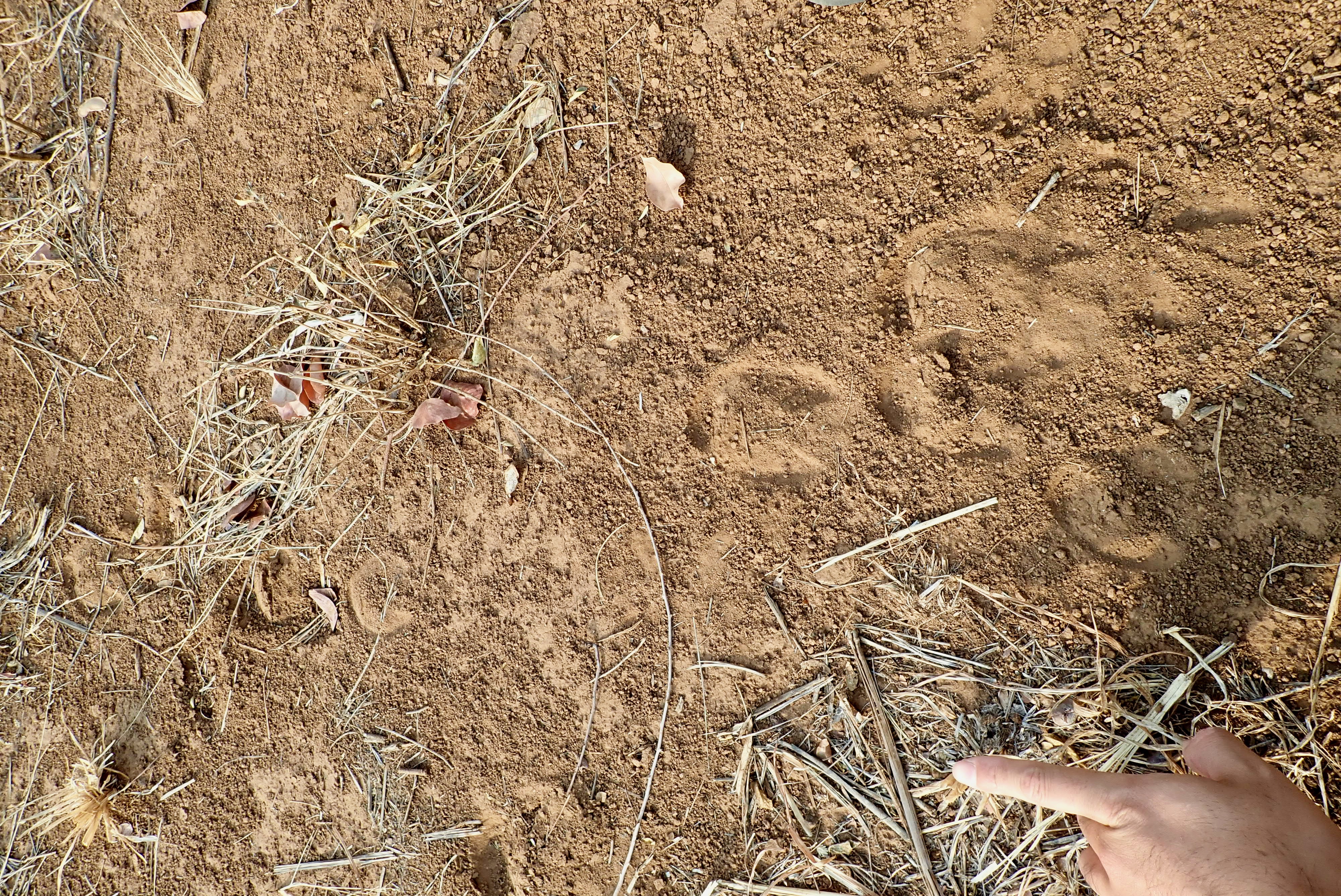 Rare leopard footprints going to the finger direction.