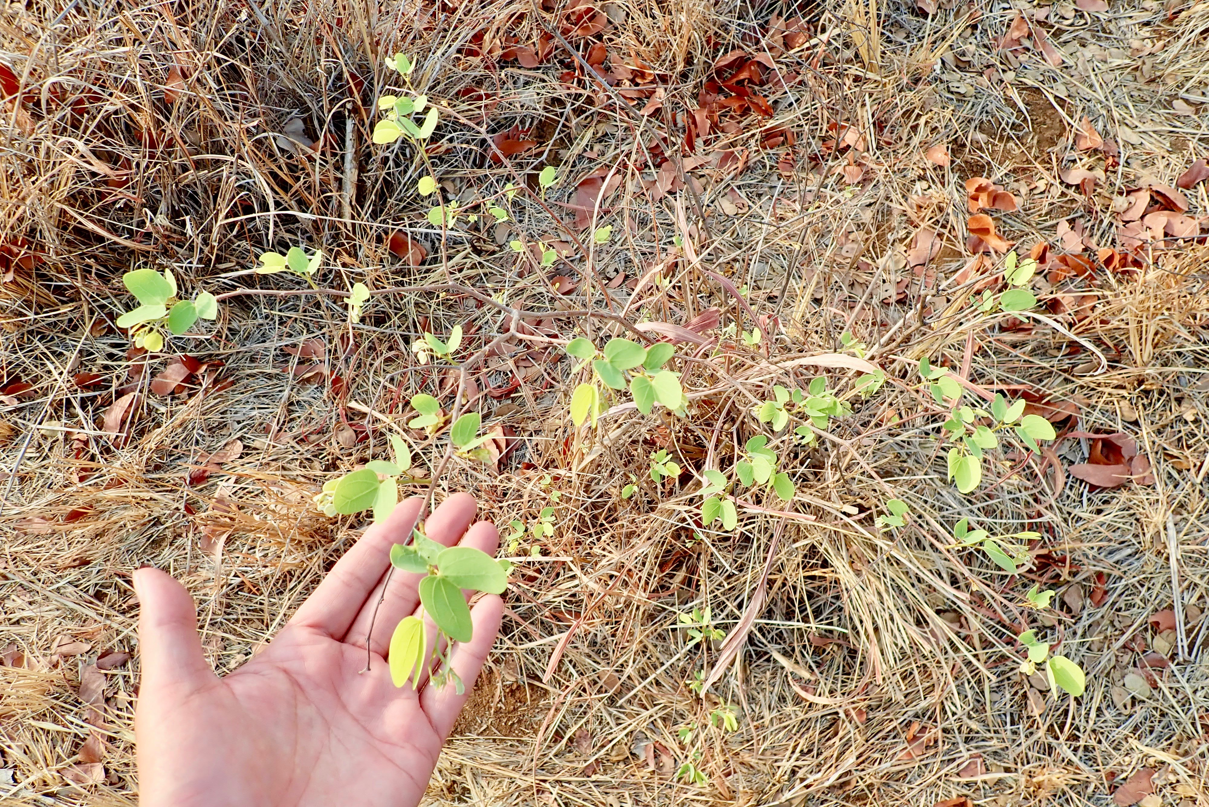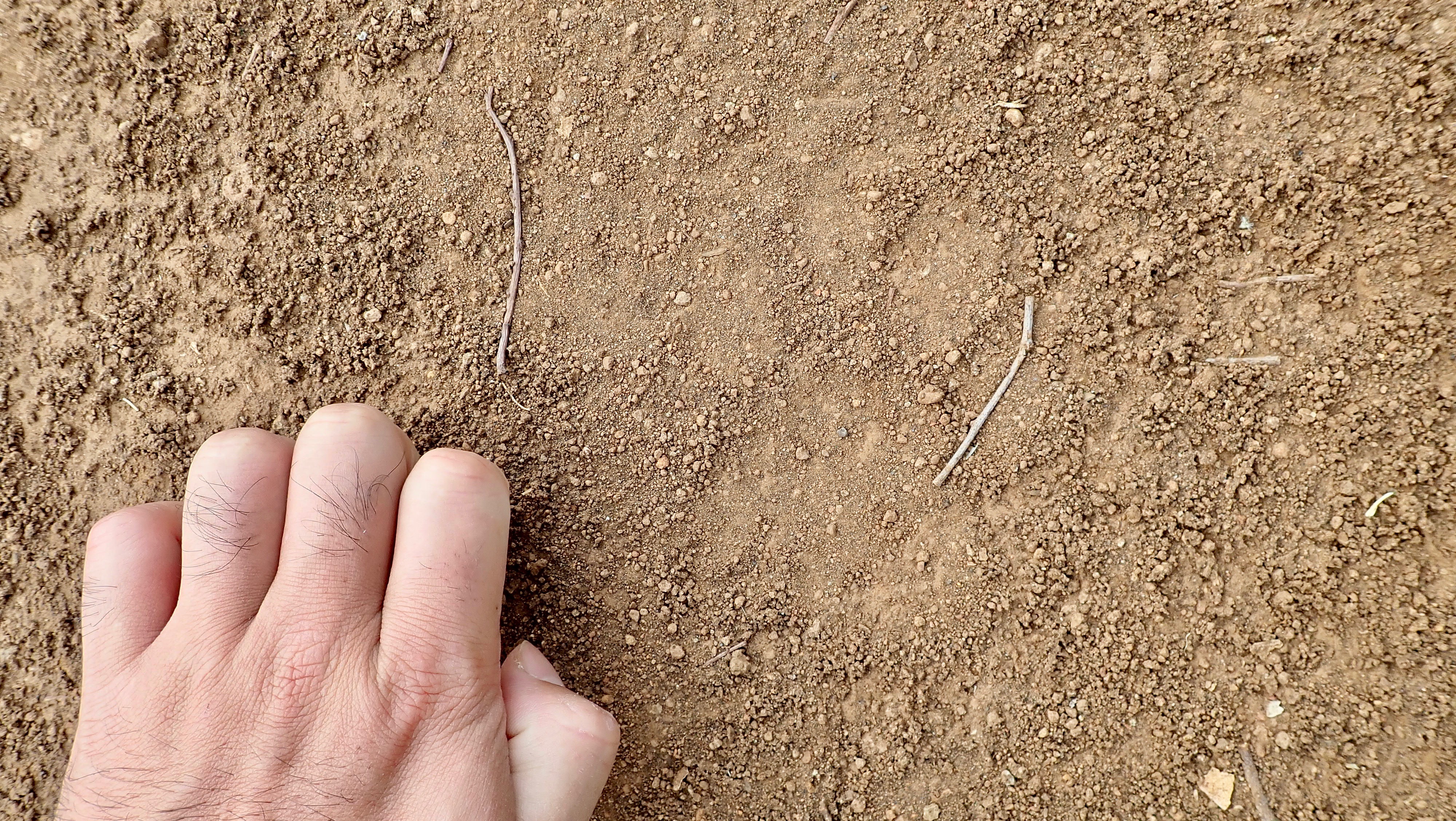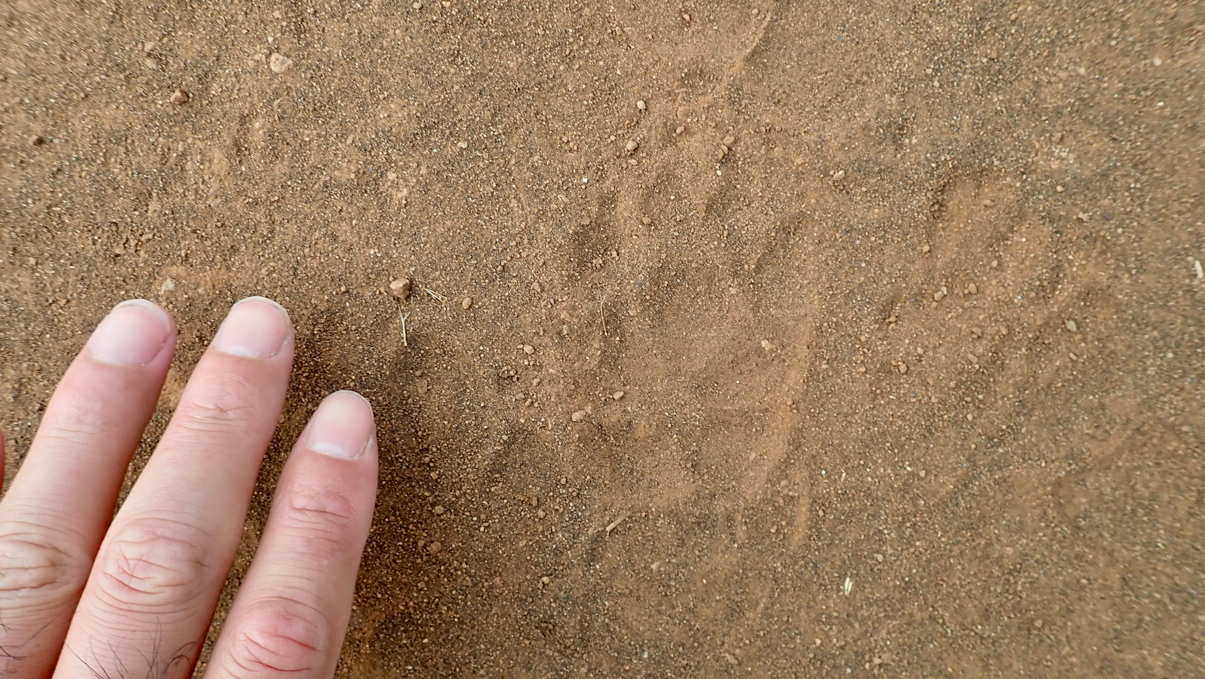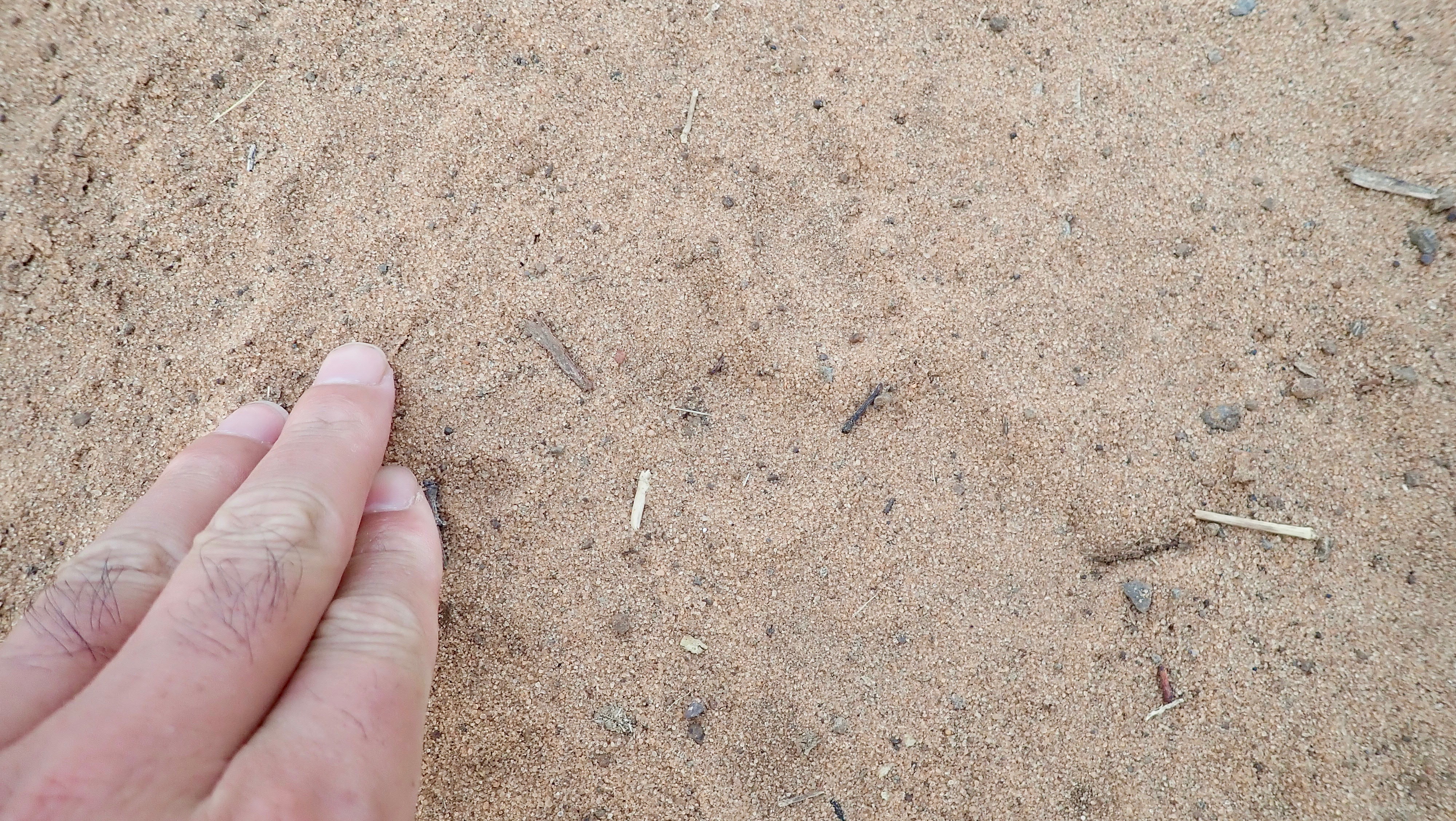 Rare leopard footprints going to the finger direction.