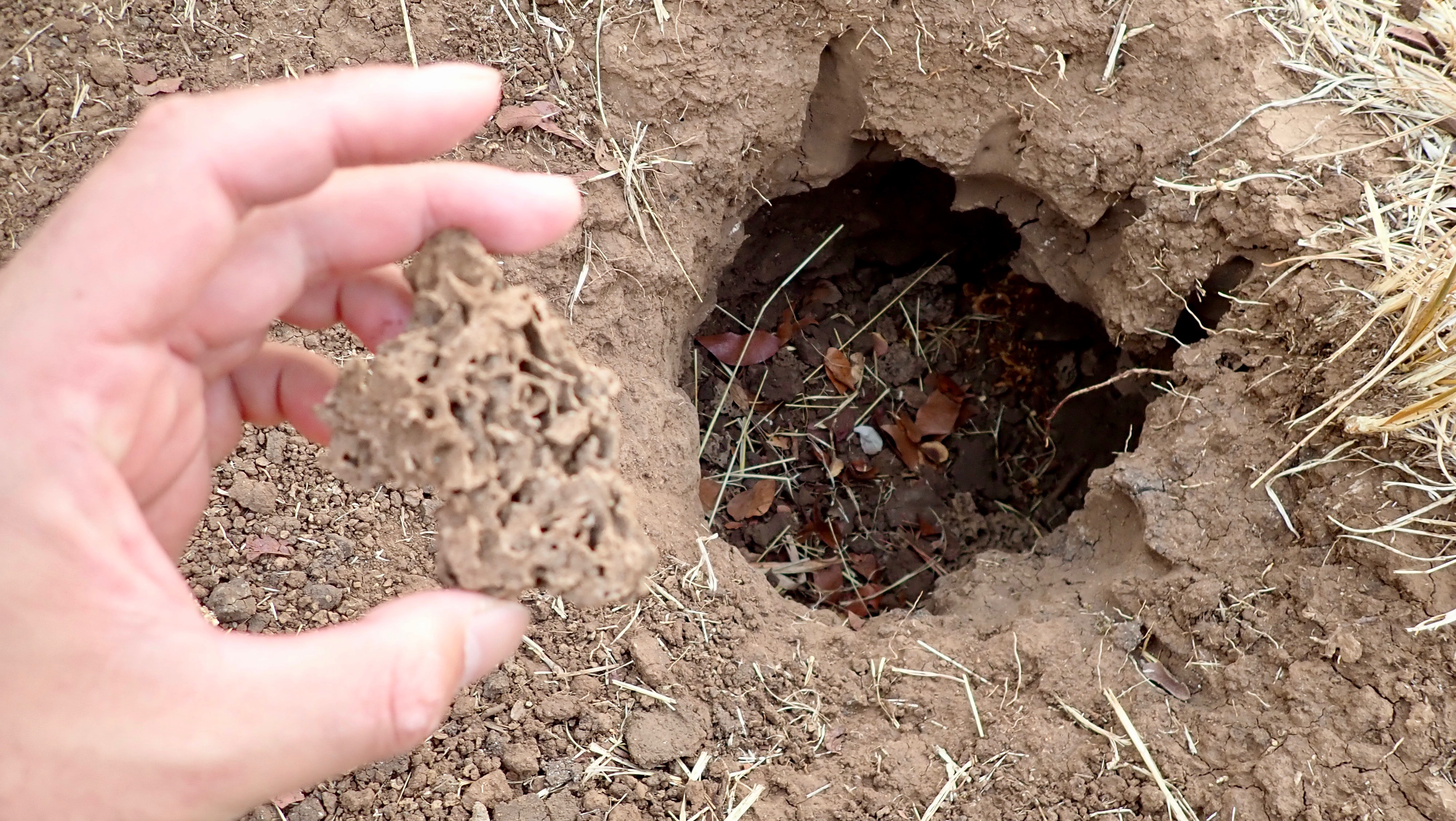 Traces of anteaters digging and eating ant nests.