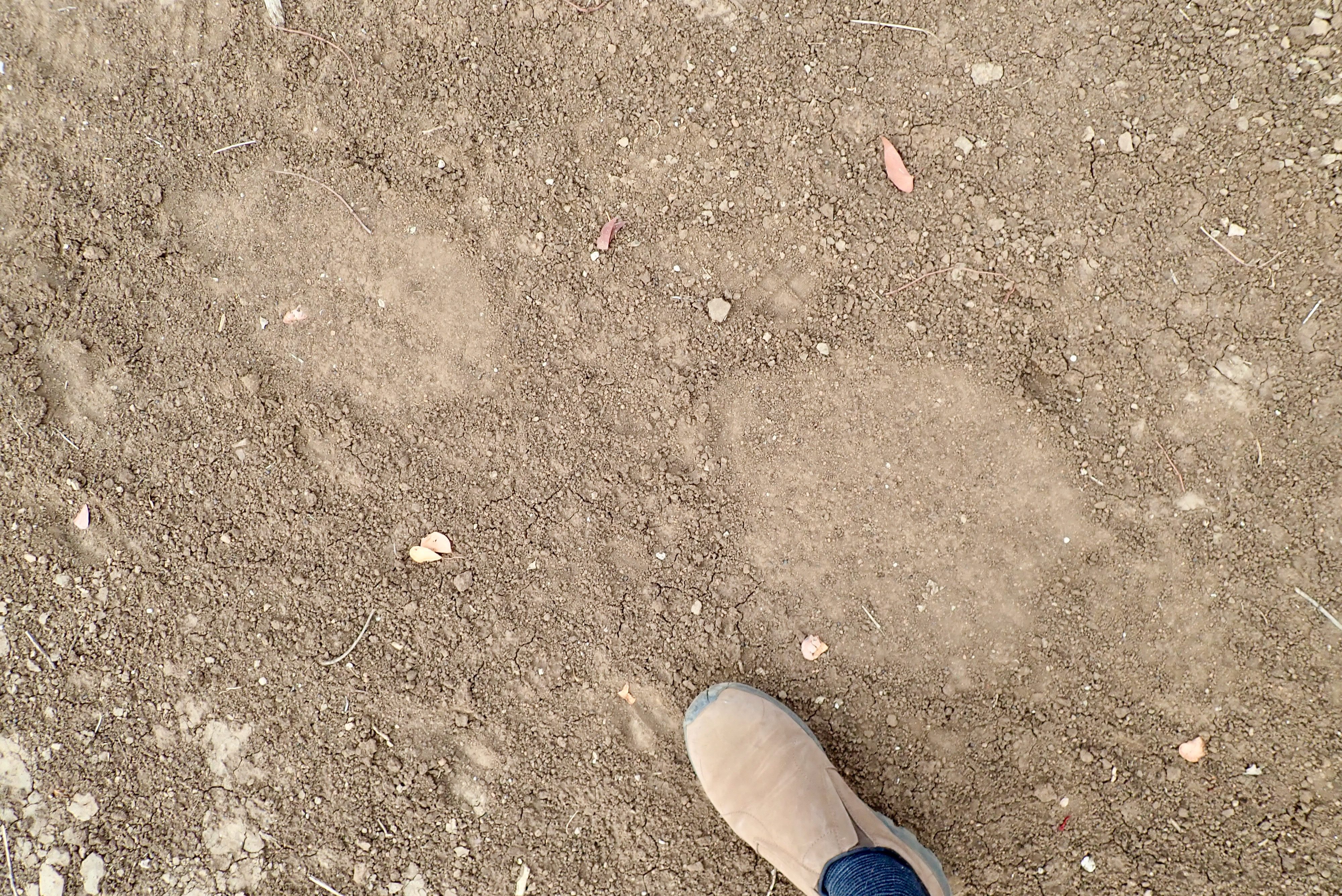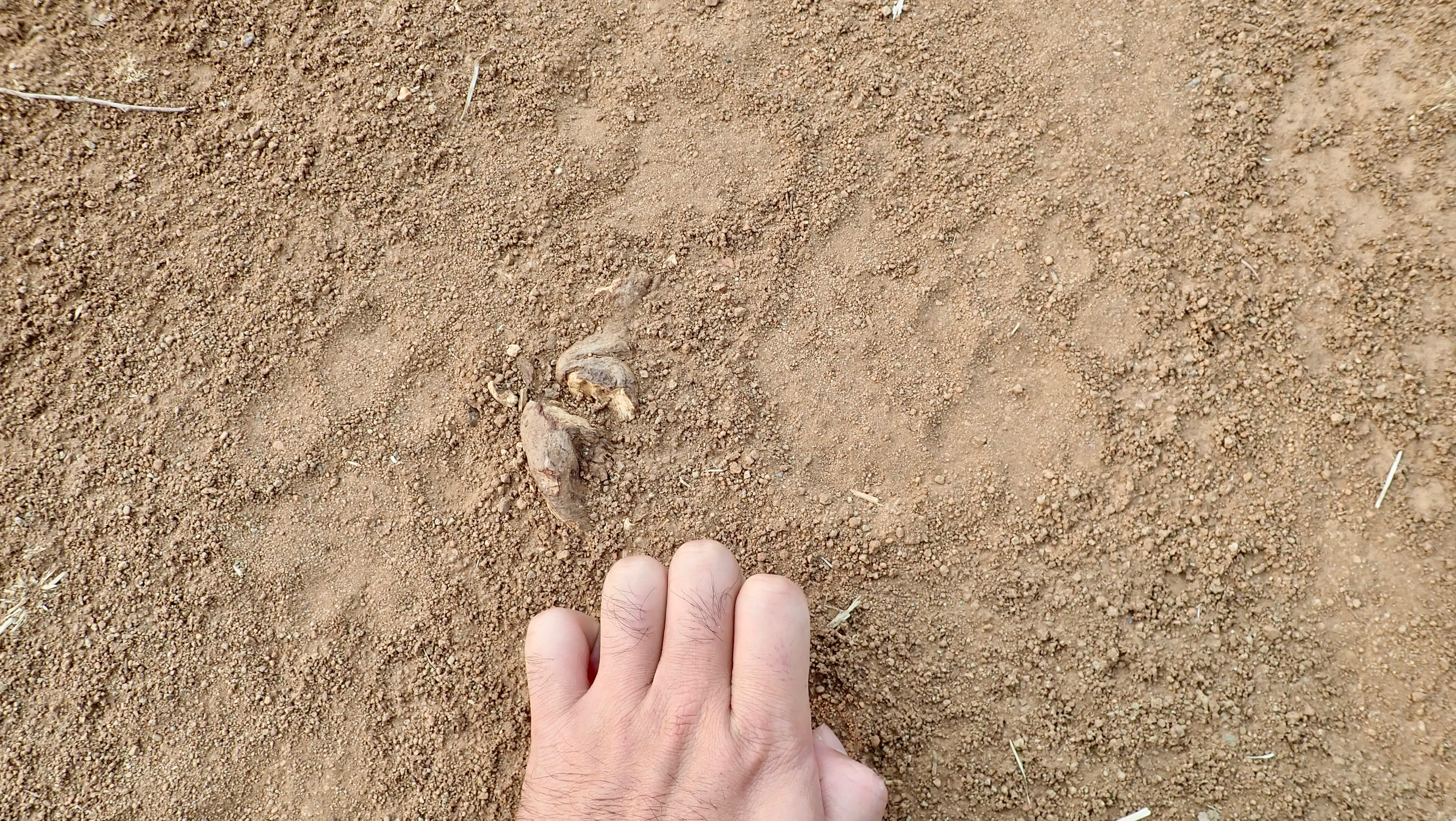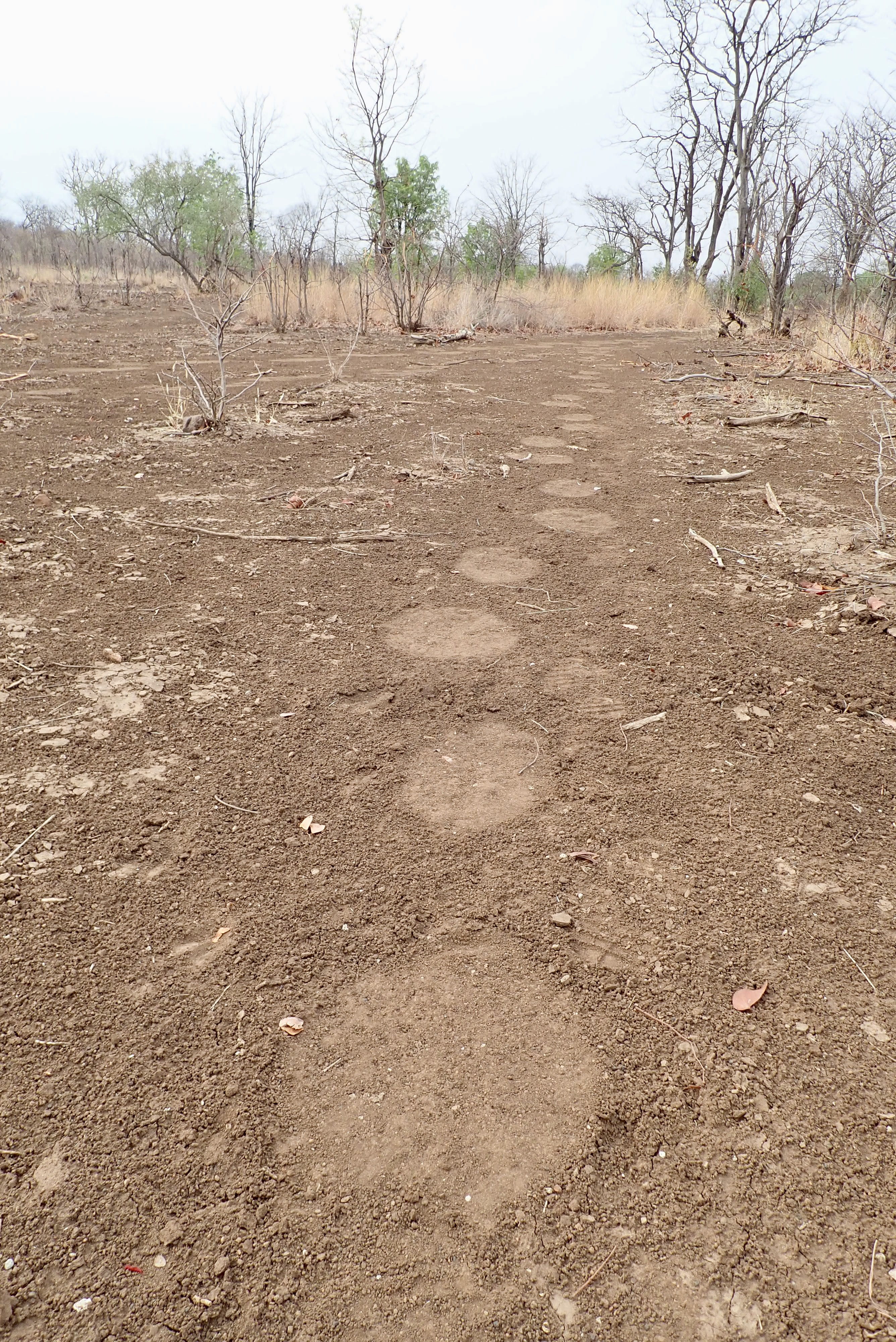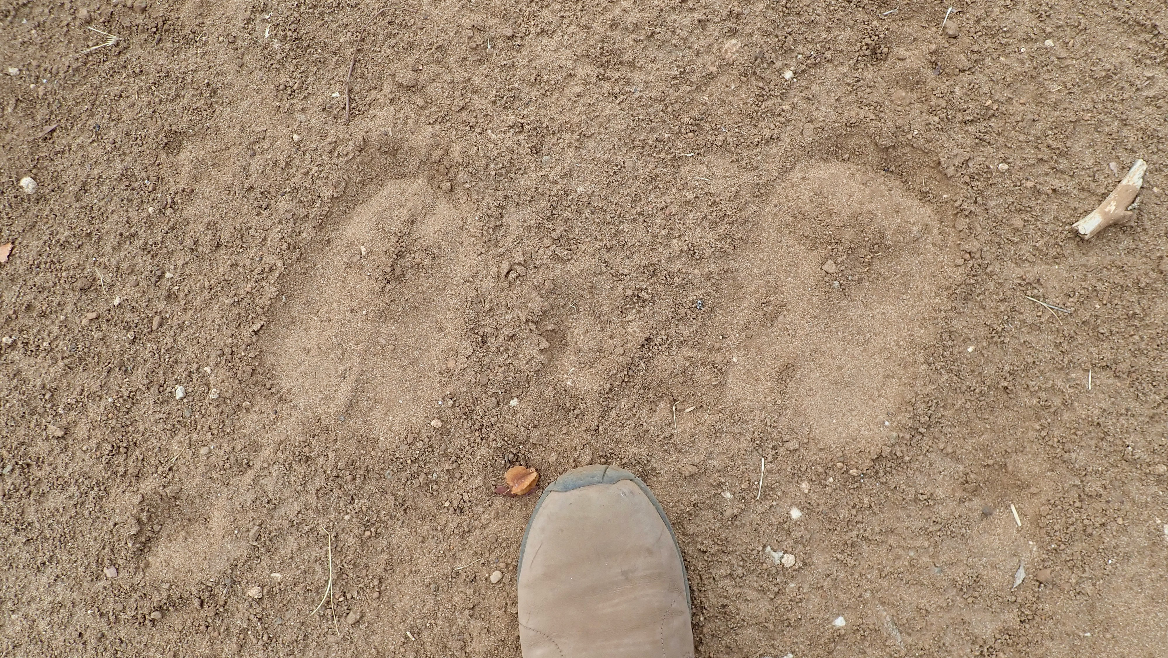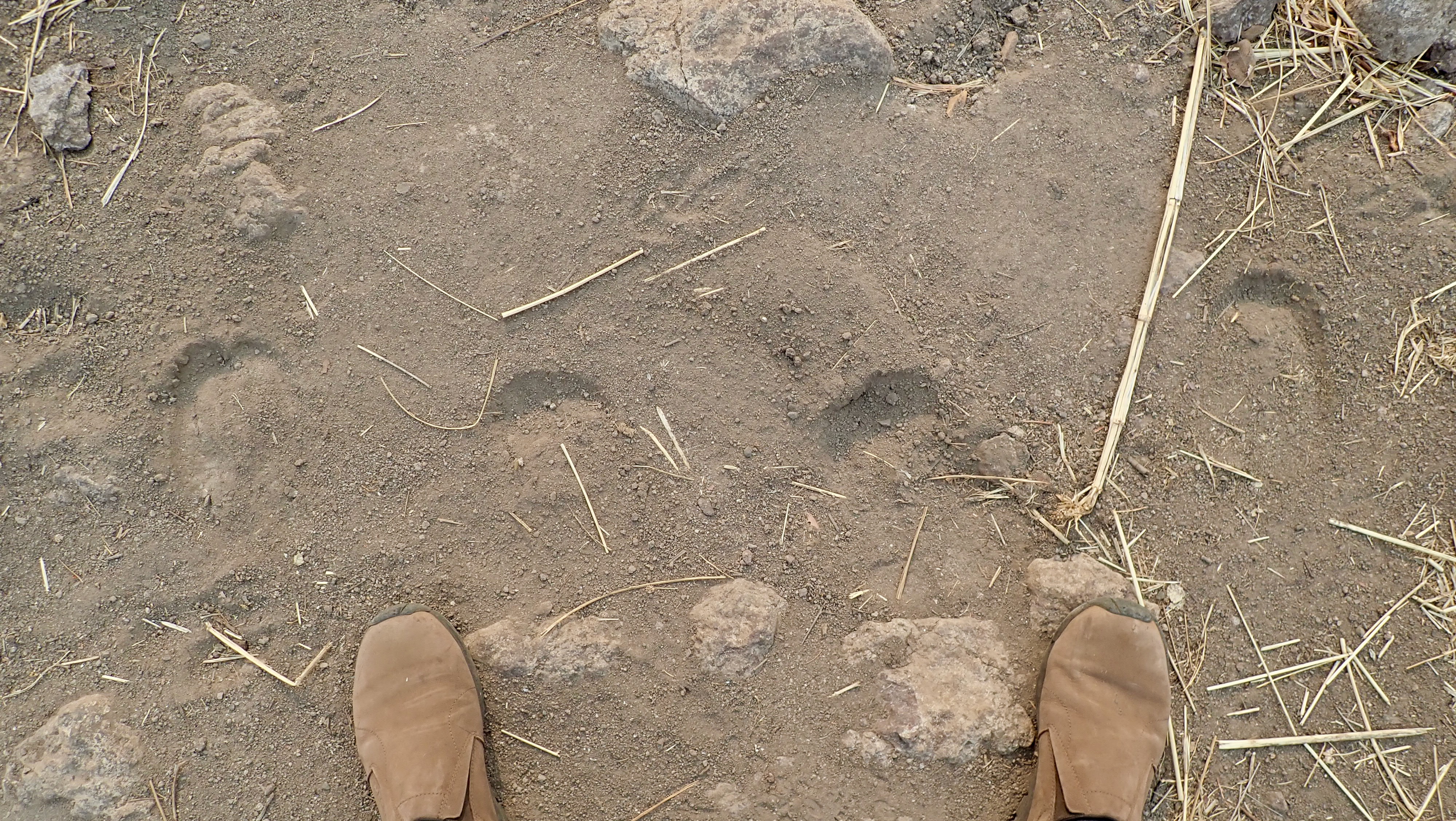 Hyena footprints. The nails are out and a little rough.