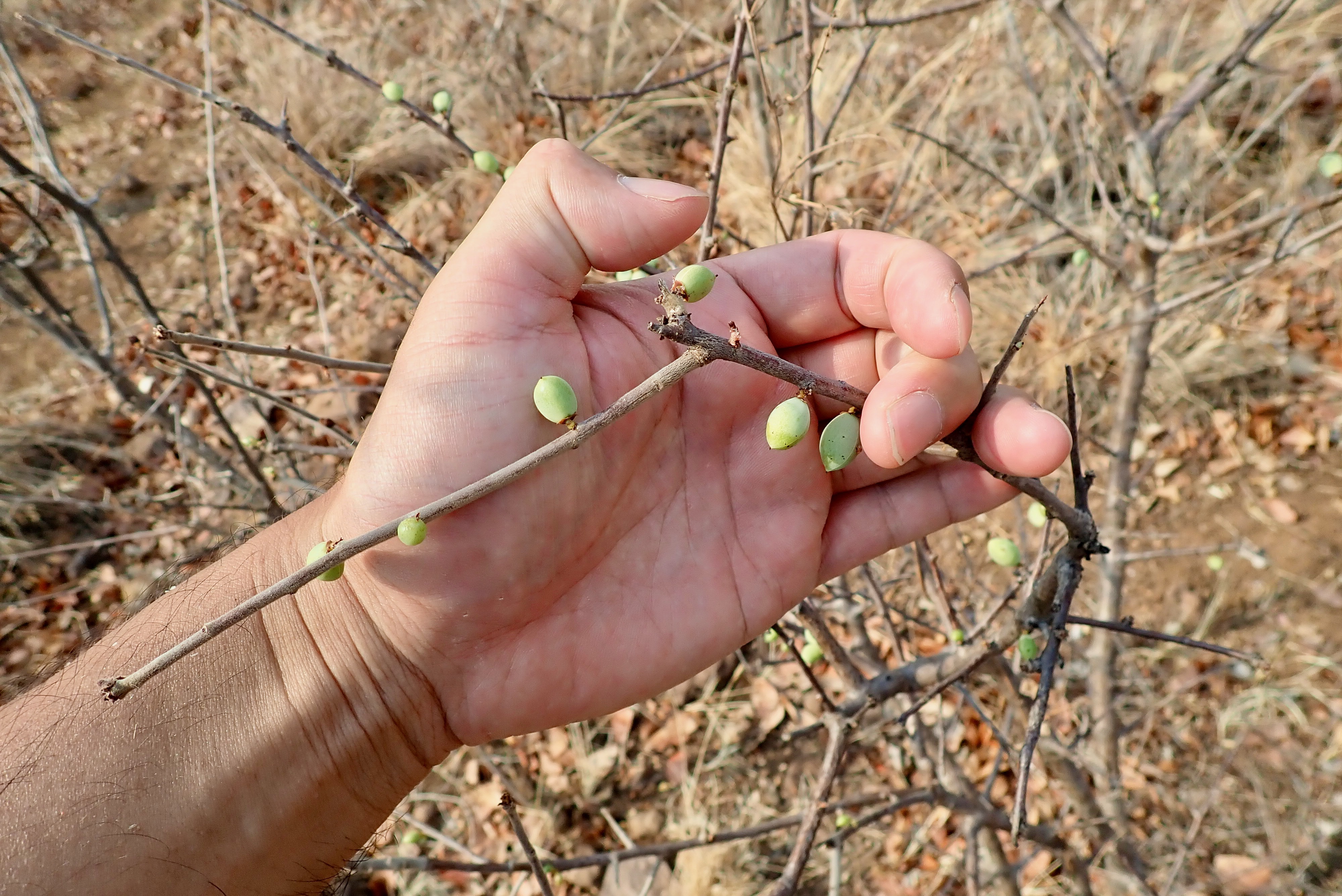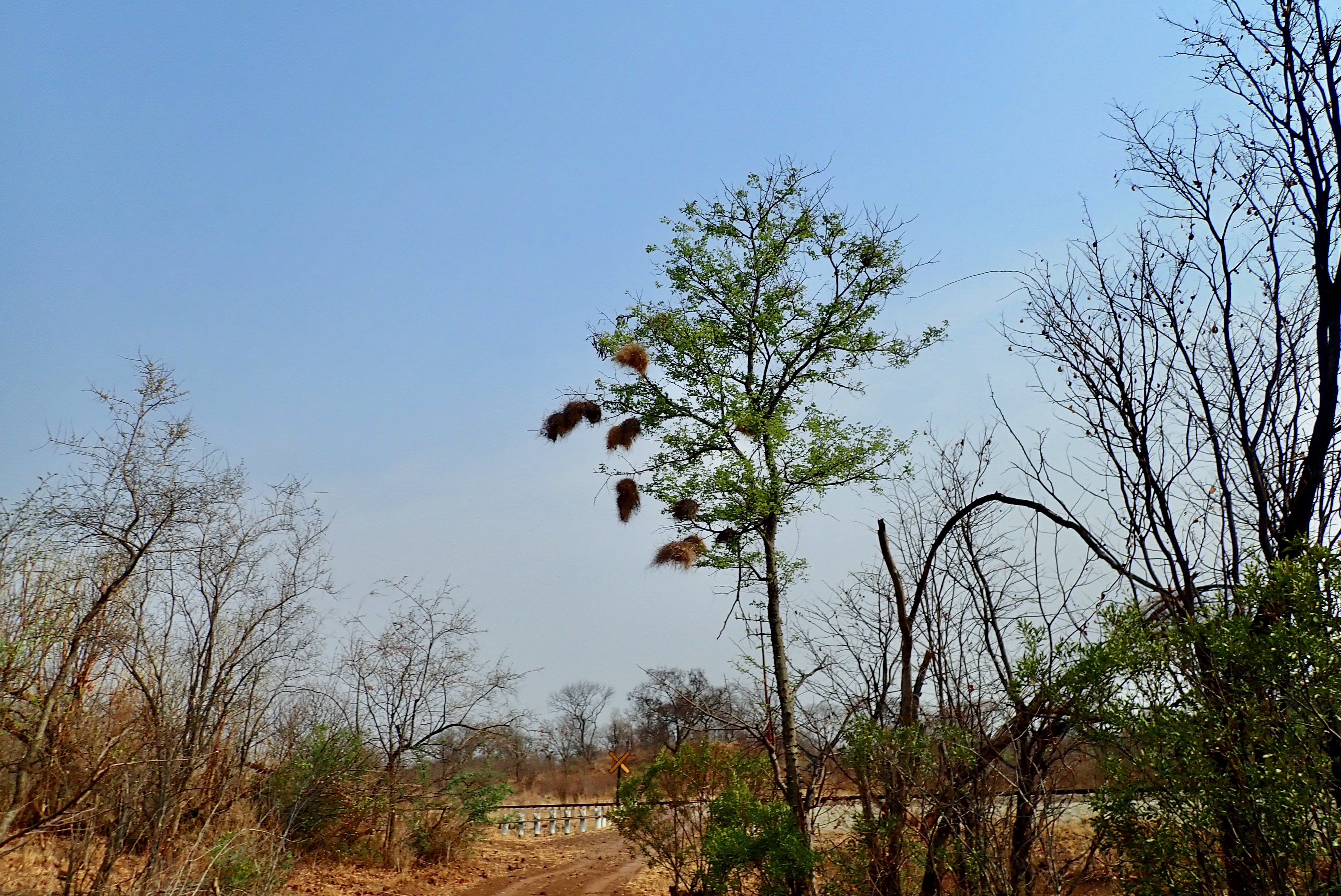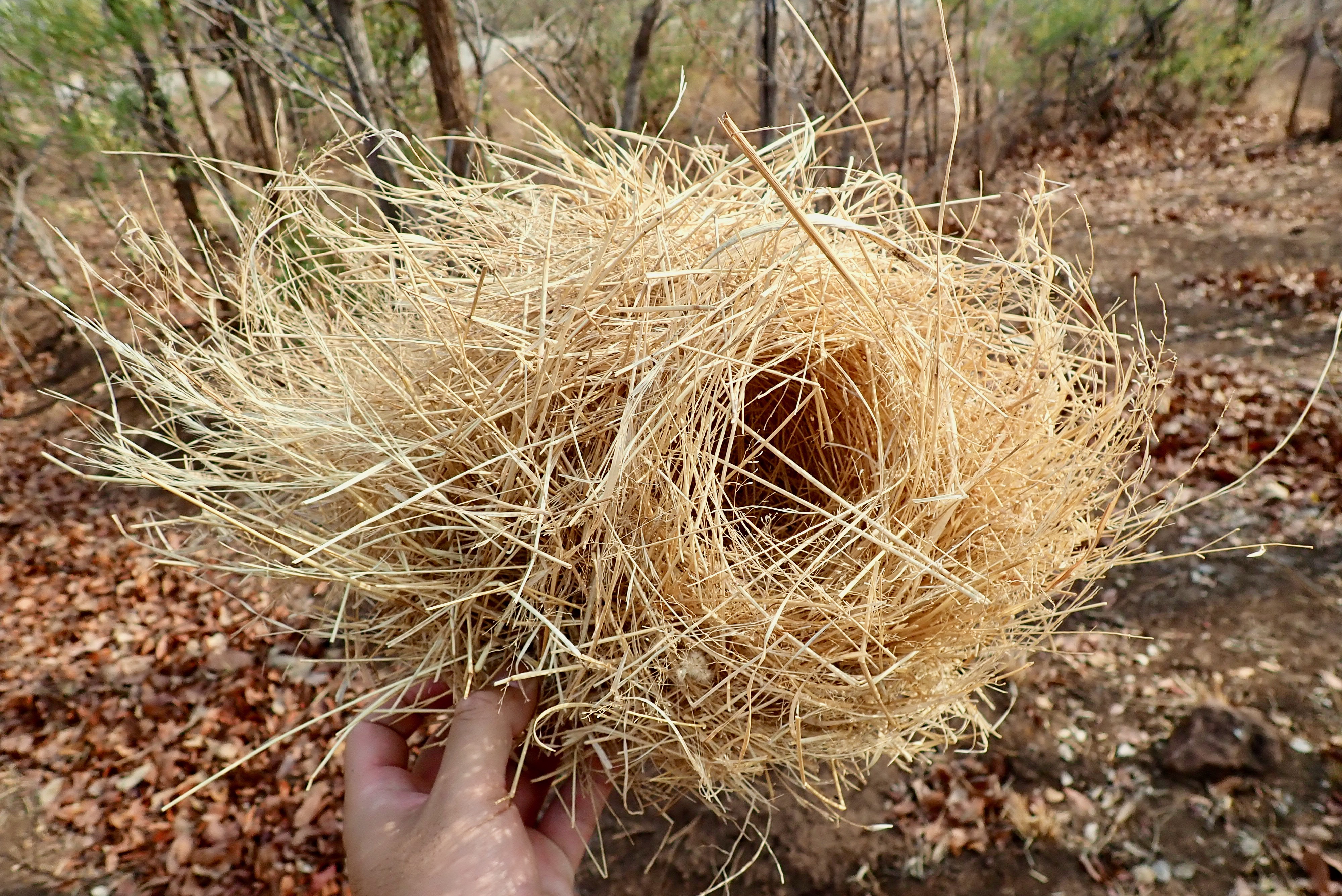 Along the dry river, a kind of vulture is nesting.