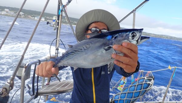 トローリングで小ぶりなホンガツオを捕獲しました。
