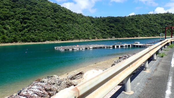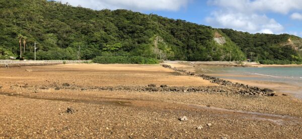台風7号の影響か、浅瀬では赤土が流出しているのが見て取れます。安脚場の砲台跡は、一年前の土砂崩れ以来閉鎖されたままでした。