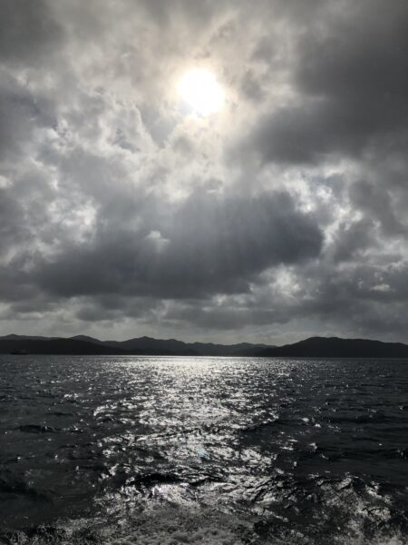 取り残された人たちと、船をチャーターして古仁屋に渡りました。漁船やヨットではなんでも無い波風でも、巨大なフェリーは欠航してしまいます。