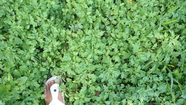 畑の周囲は一面フーチバー(ニシヨモギ)だらけ。