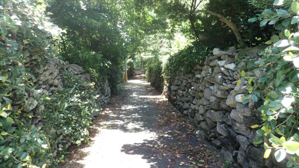 風情のあるサンゴの石垣。オオイタビを絡ませて更に強度を上げているようです。