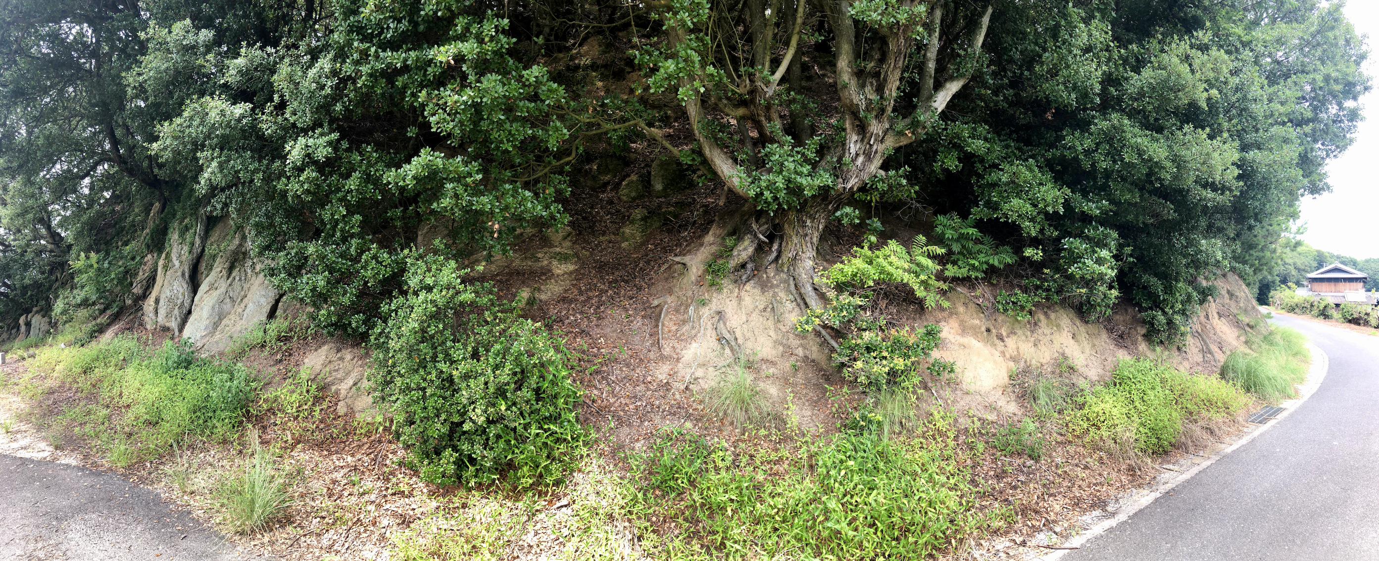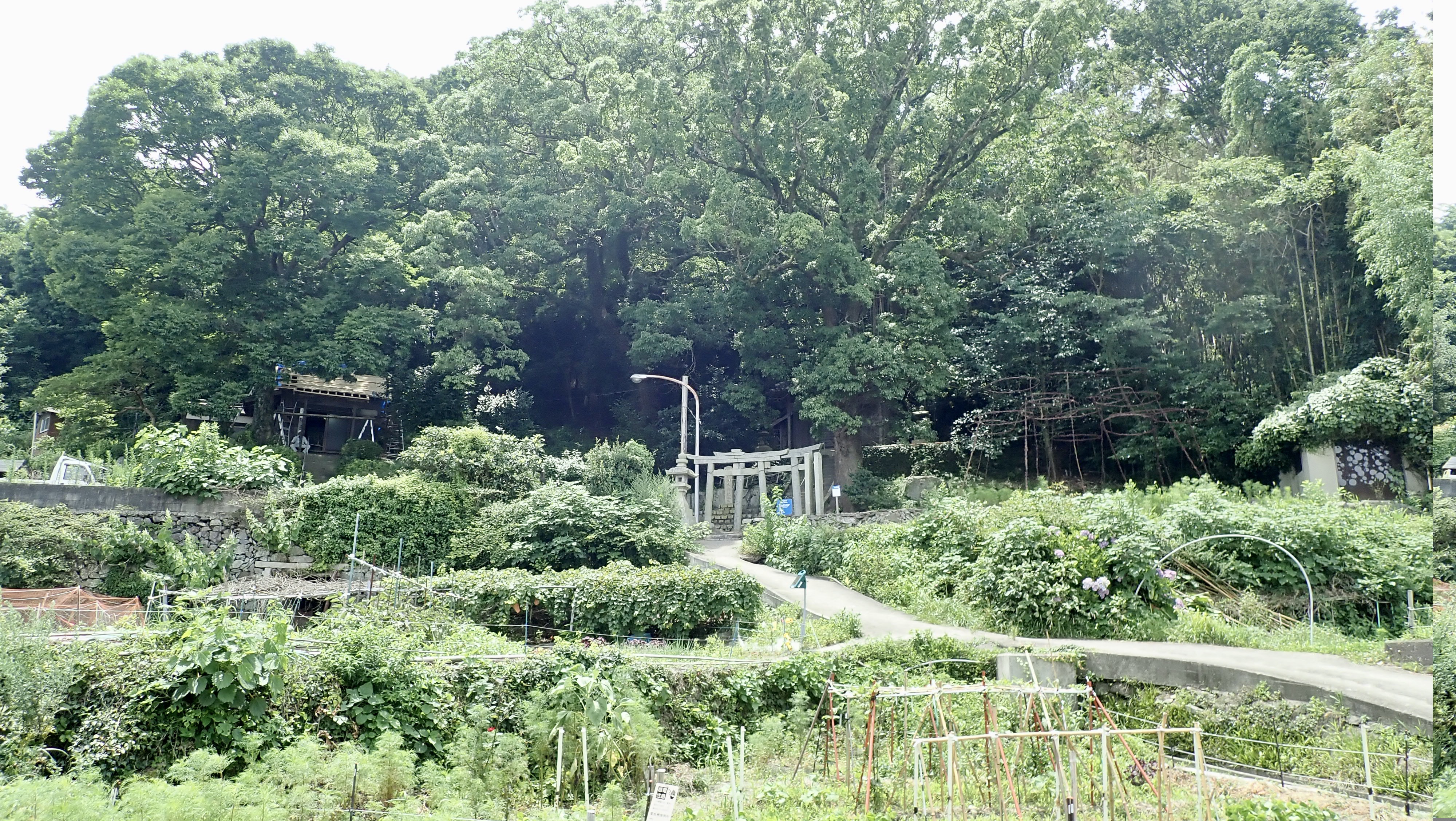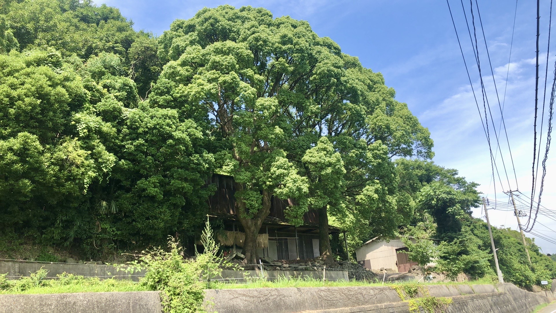 棚田から海沿いに出て進むと、集落外れにこんもりとした鎮守の森がありました。