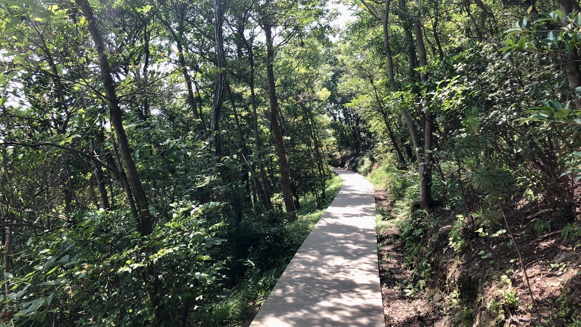 入り口から美術館に至るまでの白い小径をゆっくりと歩んでいくと、緑がささやき、海がひらけ、島の様々な命と交歓しつつランドスケープと意識が徐々に溶け合っていくような、幸せな浮揚感に包まれます。